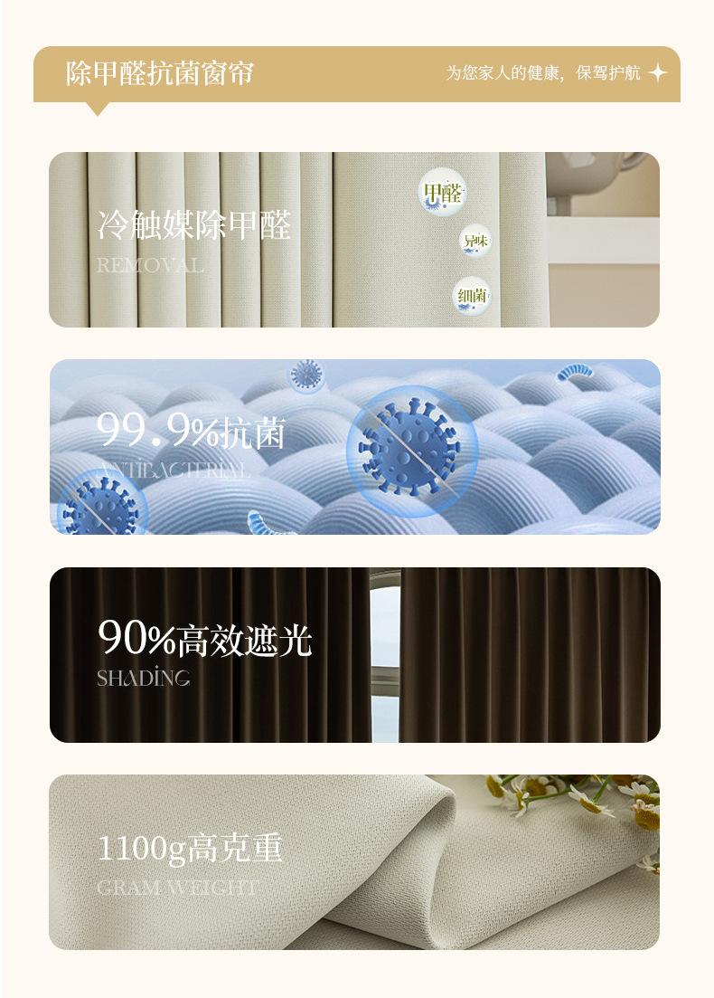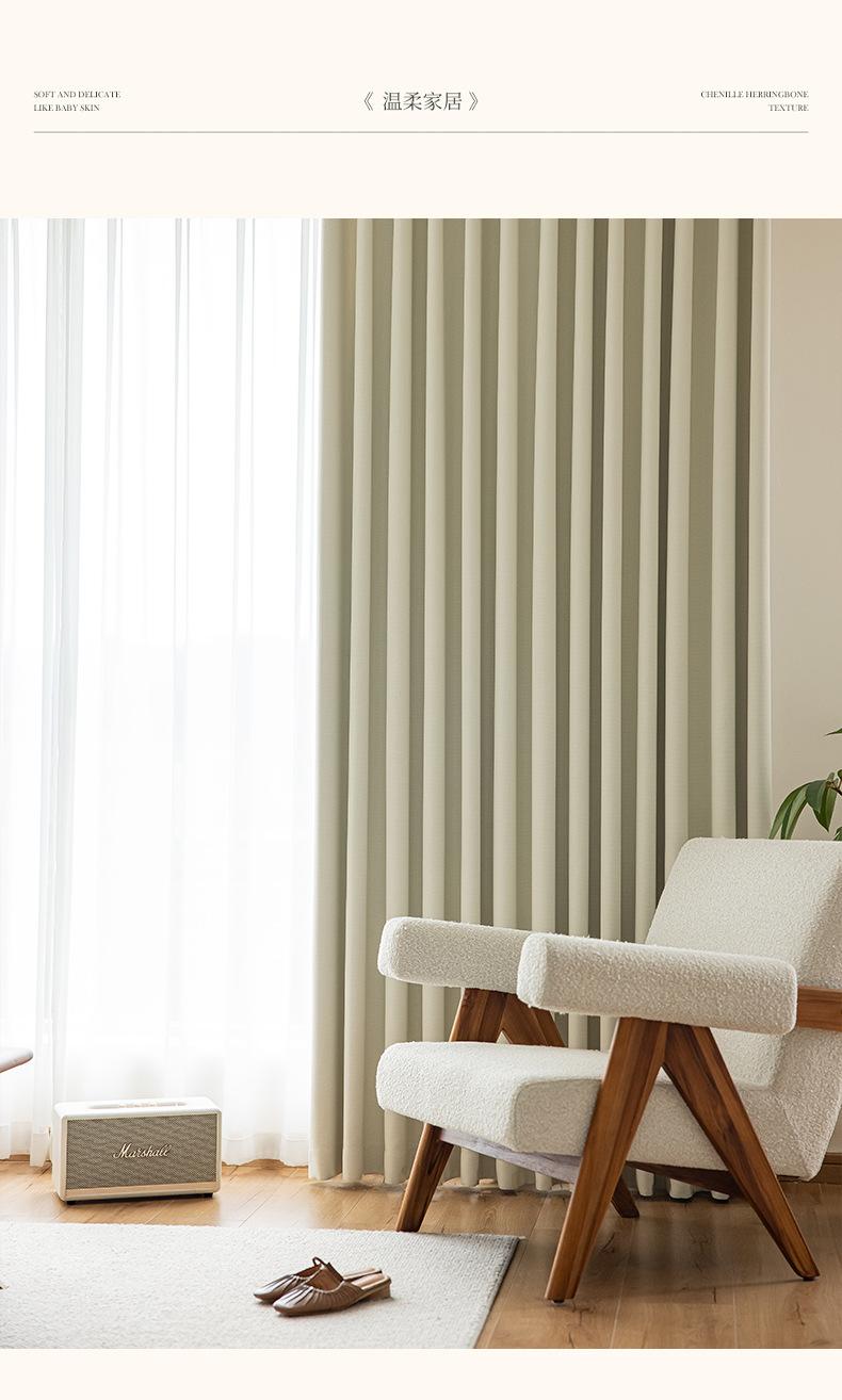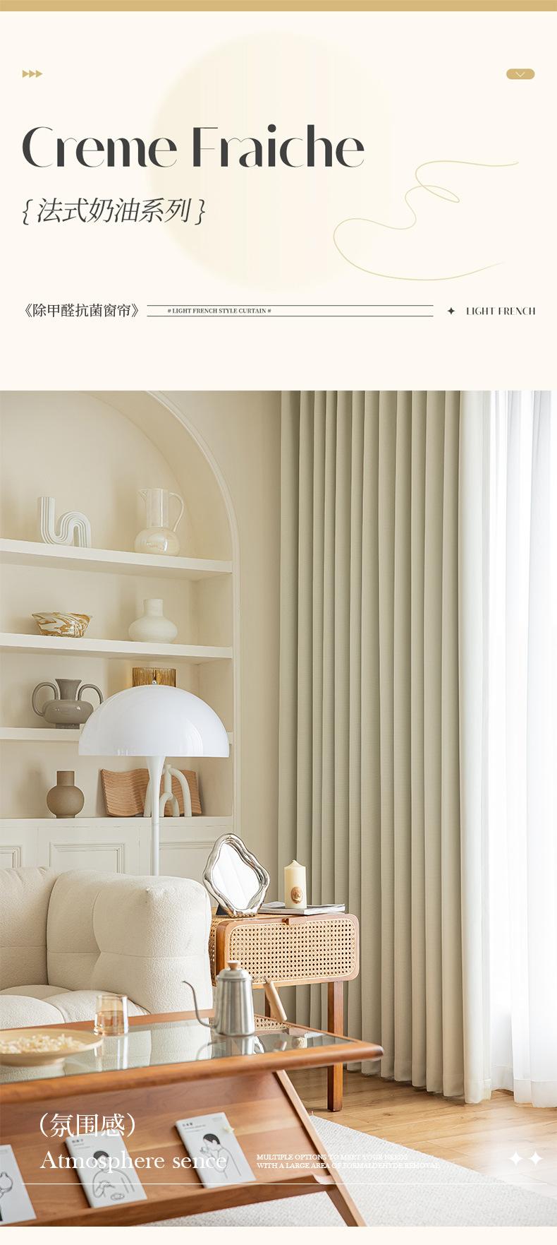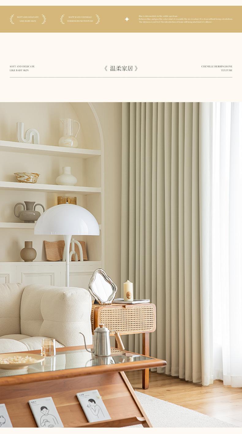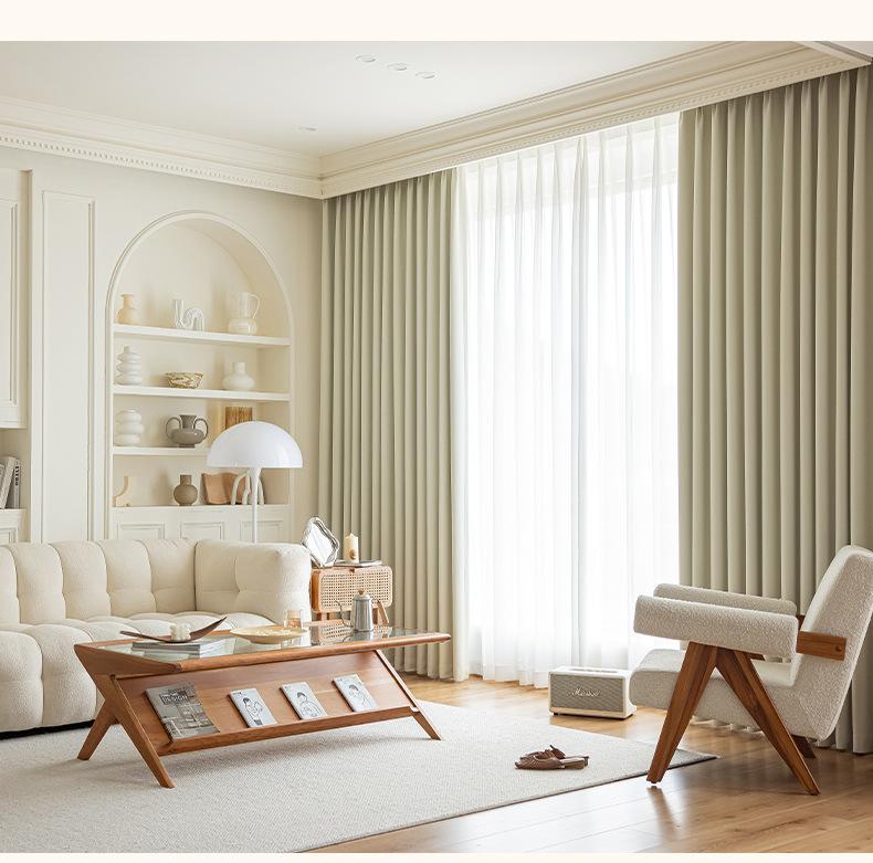 Color crema sombreado total Cortina Shaoxing algodón y lino jacquard tejido de cortina de lujo ligero cortina para dormitorio sala de estar protector solar producto terminado