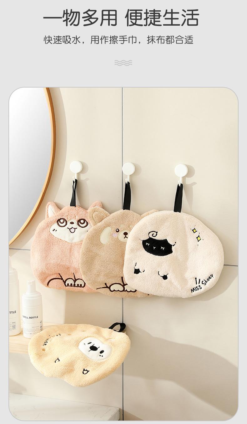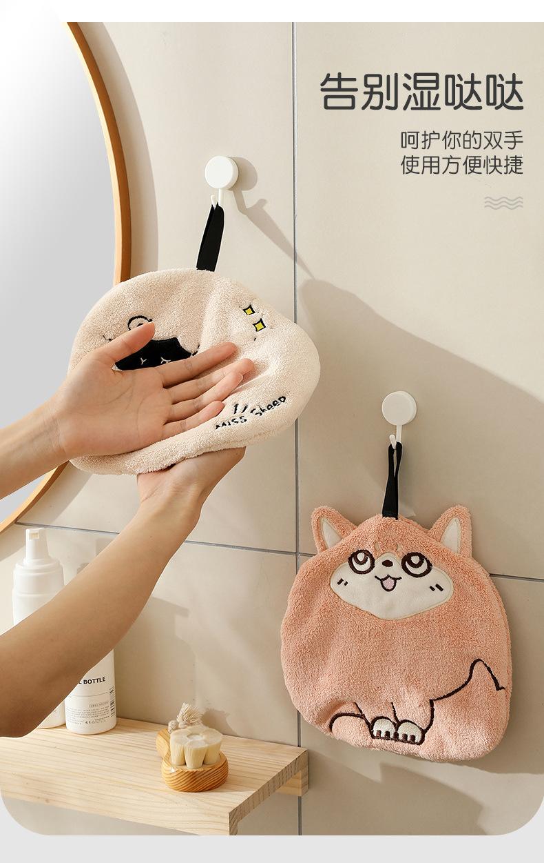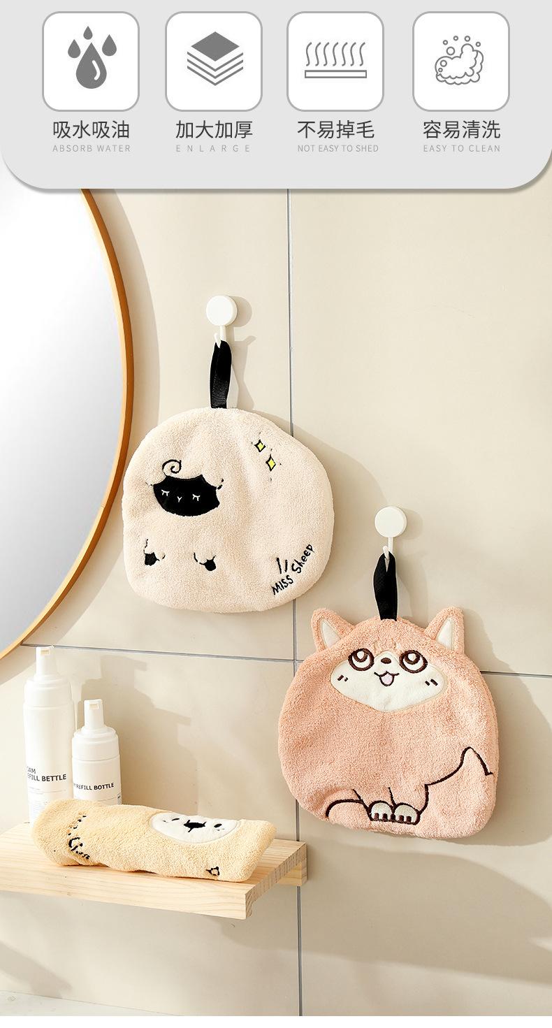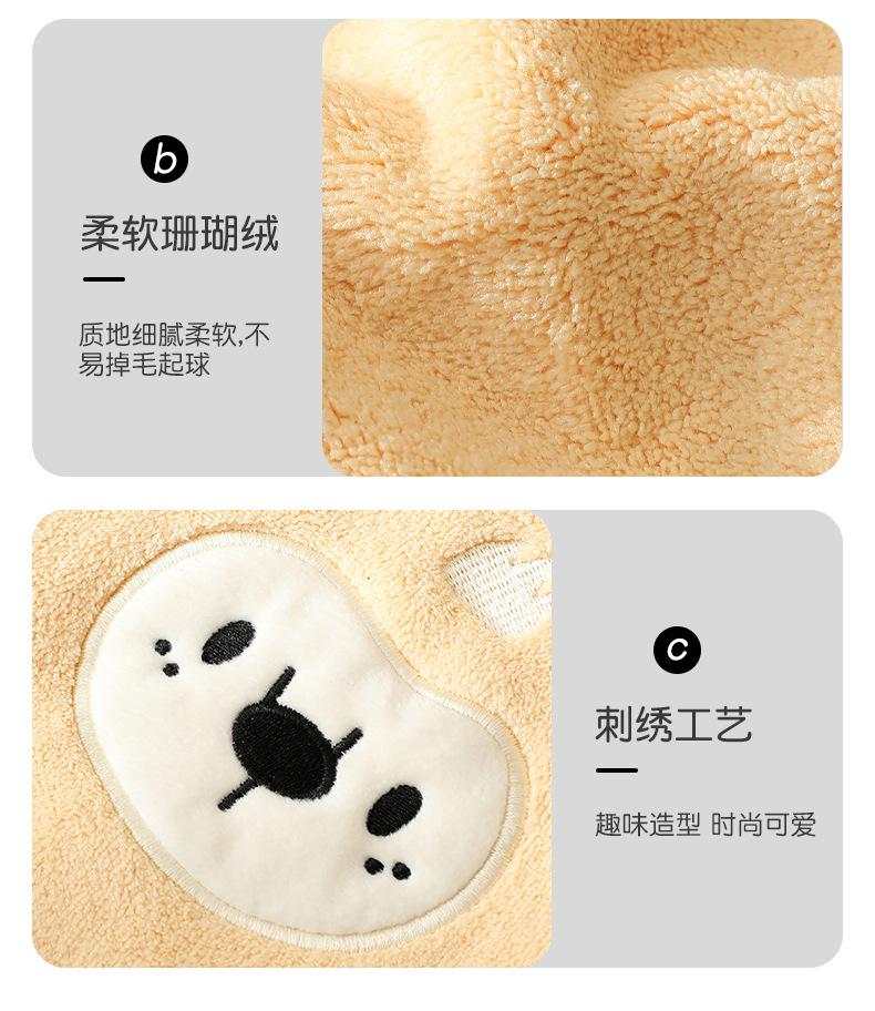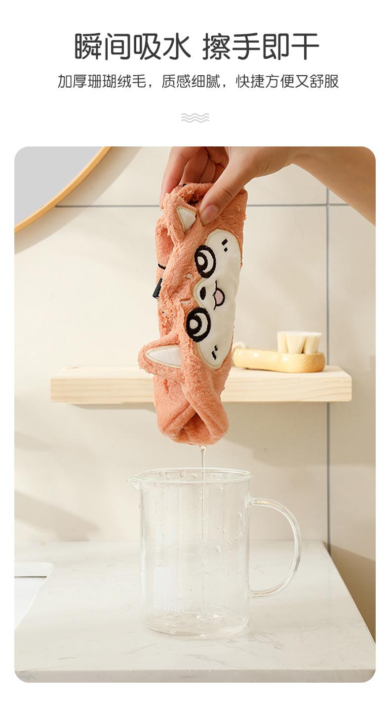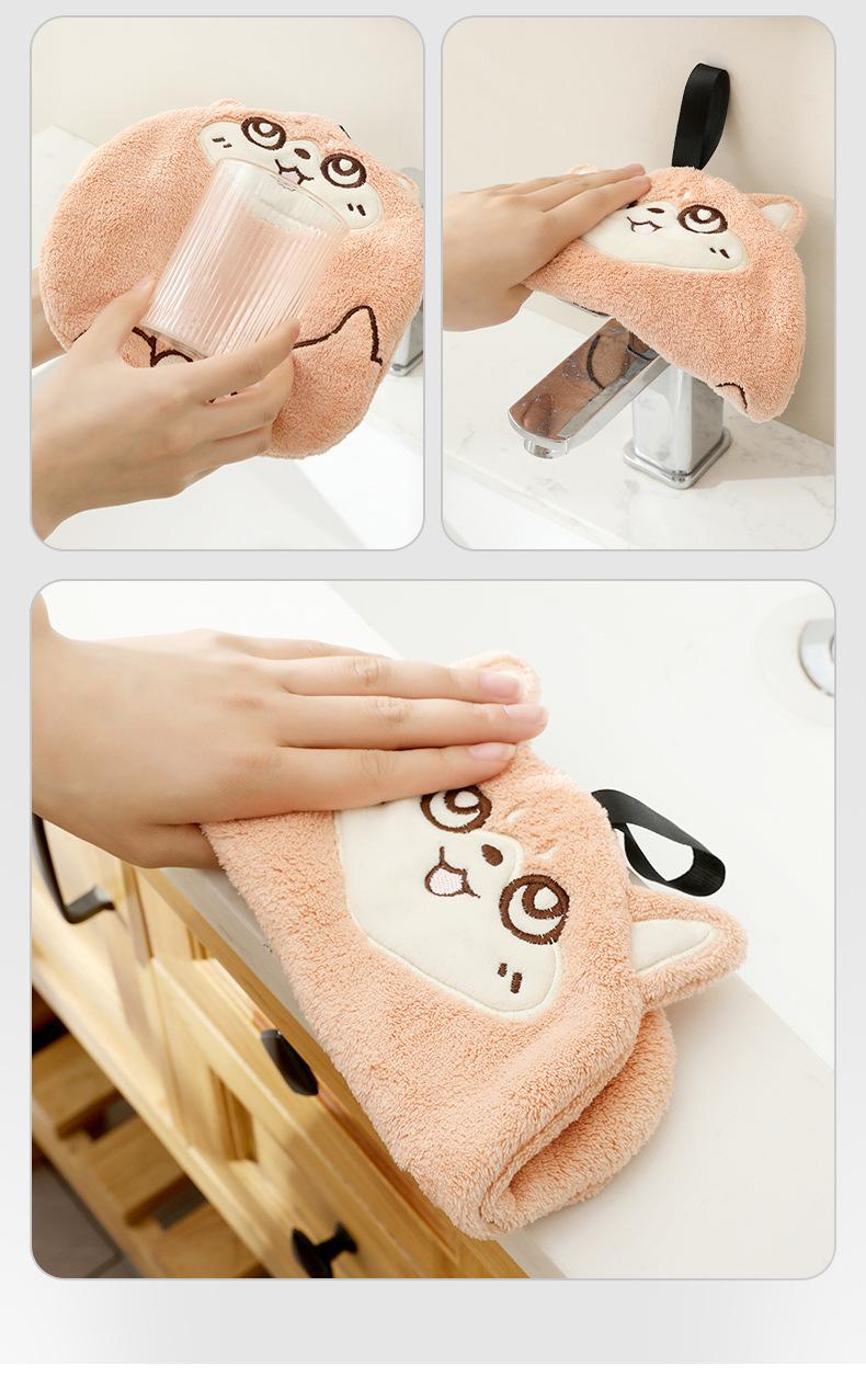 Toalla de manos de doble capa con dibujos animados, bonito pañuelo de forro polar coral, absorbente para cocina, cuadrada, para colgar en el hogar, para niños.