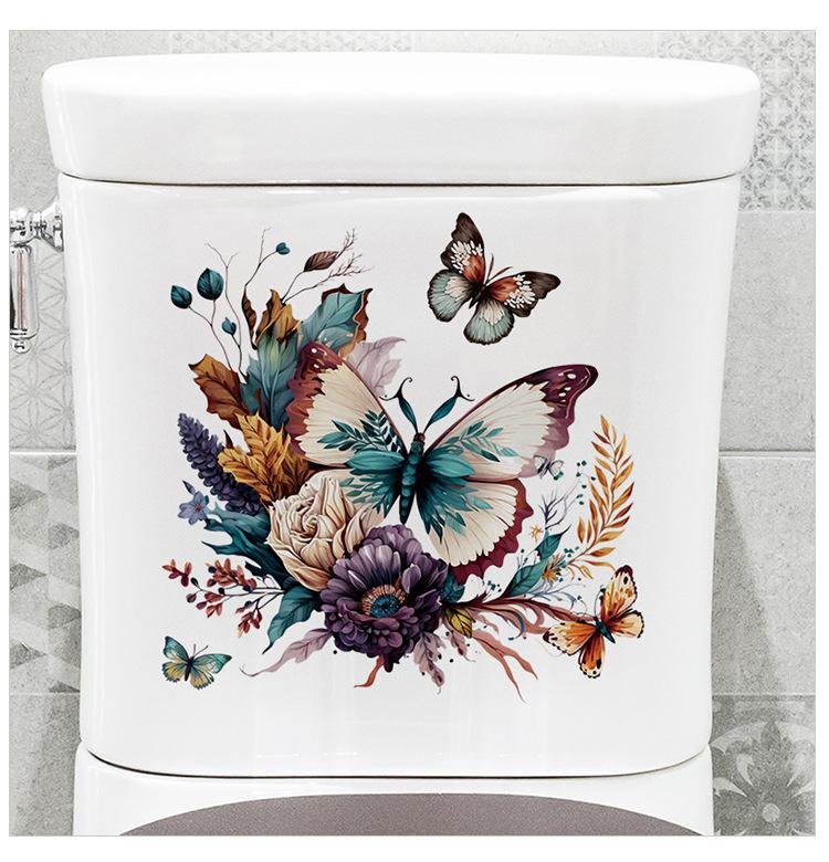 1 pieza de pegatinas de baño con diseño de mariposa y flores. Pegatinas autoadhesivas impermeables con diseño de flores creativas de dibujos animados para baño.