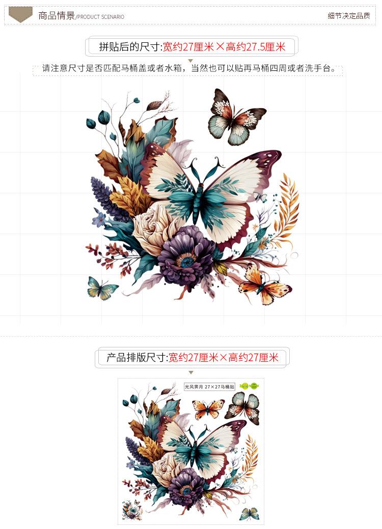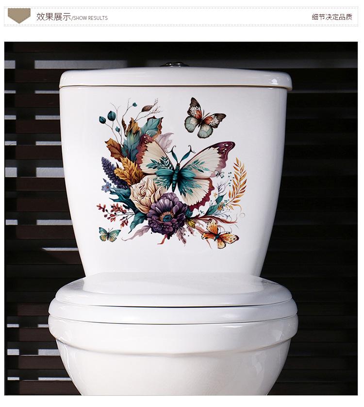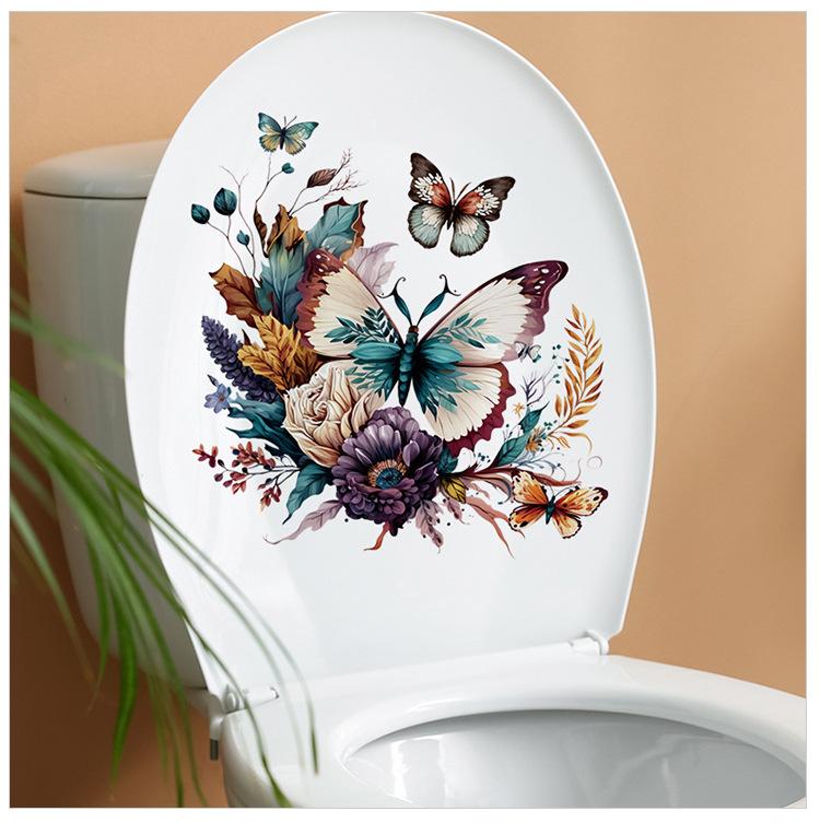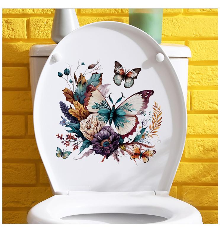 Compra 1 pieza de pegatinas de baño con diseño de mariposa y flores. Pegatinas autoadhesivas impermeables con diseño de flores creativas de dibujos animados para baño. al por mayor en Joom.pro
