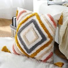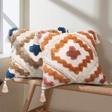 Funda de almohada de algodón con mechones coloridos de estilo marroquí