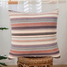 Funda de almohada étnica de rayas coloridas teñidas con hilo bohemio