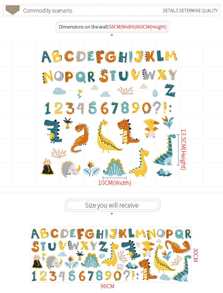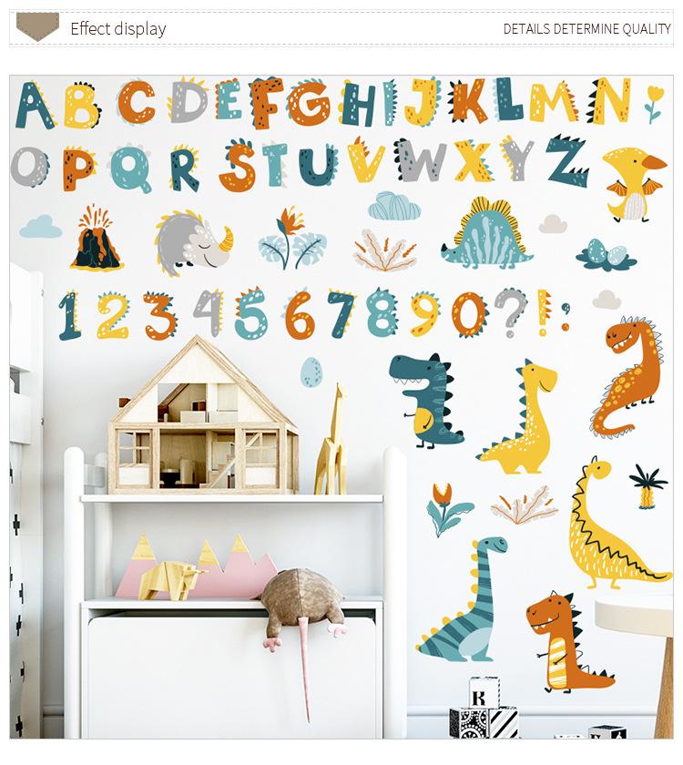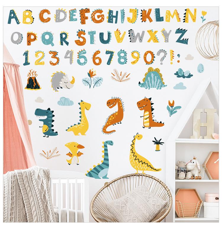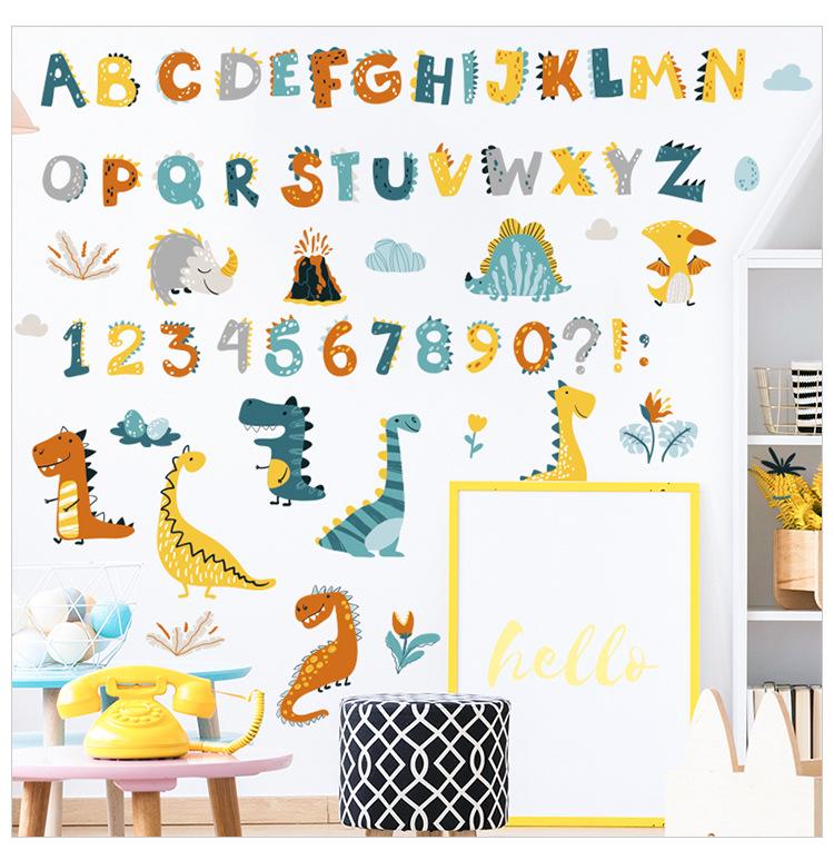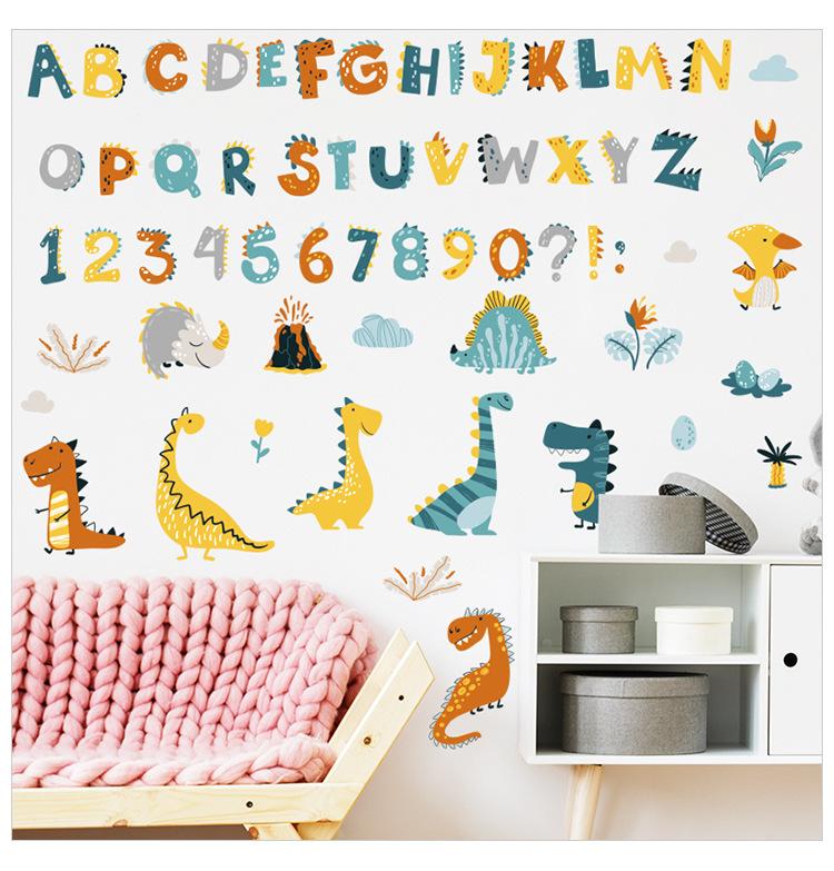 Pegatina de letras de dinosaurio para niño de jardín de infantes, pegatina decorativa para habitación infantil, pegatina digital de educación temprana, pegatina de pared de combinación gratuita