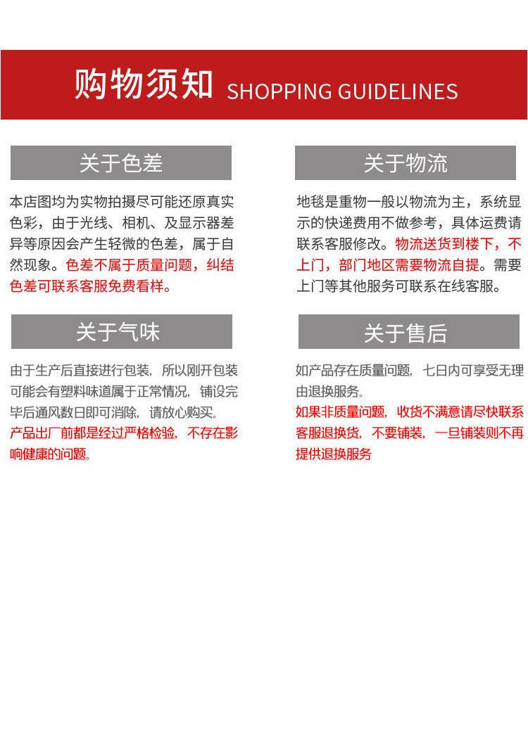 Segundo, debido a diferentes lotes de producción, el mismo modelo de alfombra puede tener diferencias de color. La diferencia de color no pertenece a problemas de calidad. Si le preocupa la diferencia de color, puede contactar con el servicio de atención al cliente para ver la muestra.
