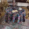 | Mantel de mesa de centro clásico de estilo europeo de alta calidad, mantel de mesa de centro, mantel retro con pequeño bloque de flores, mantel ligero de lujo con encaje redondo |