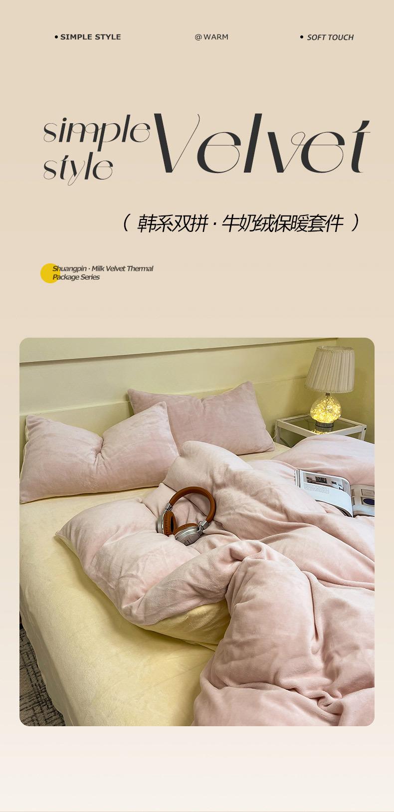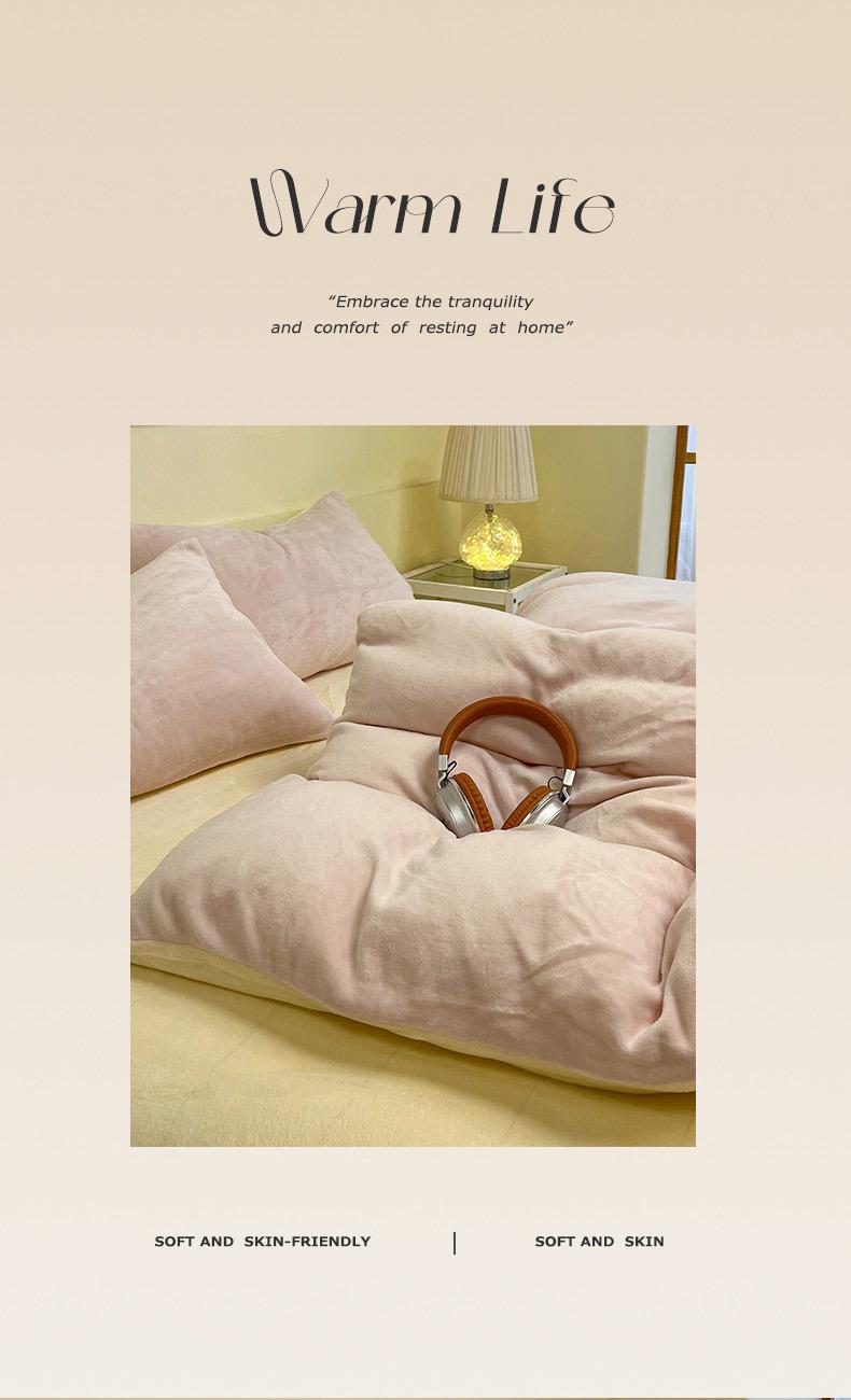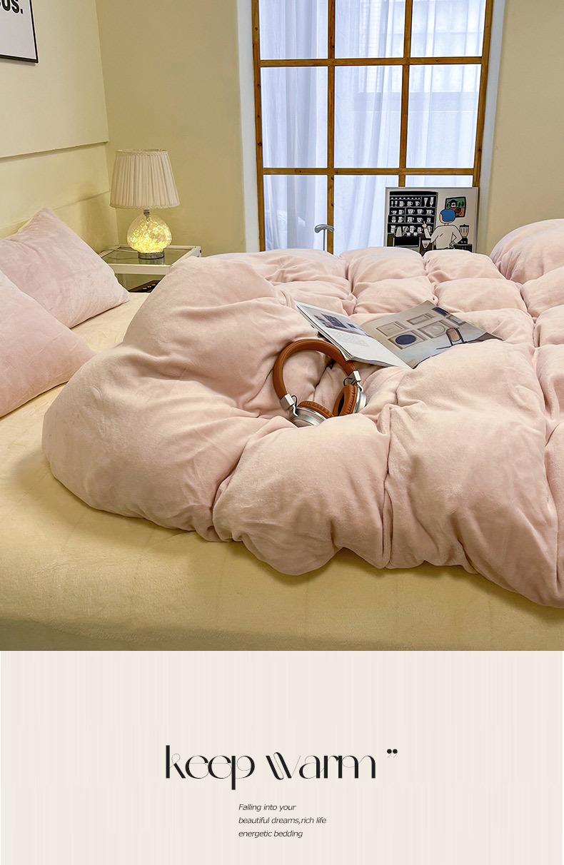 Nuevo estilo coreano color sólido doble pieza terciopelo de leche alto peso grueso cálido juego de cuatro piezas fábrica venta al por mayor comercio ventas directas