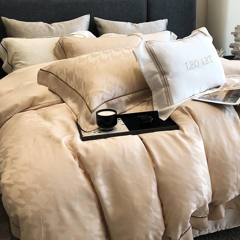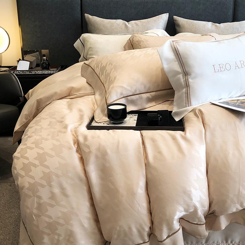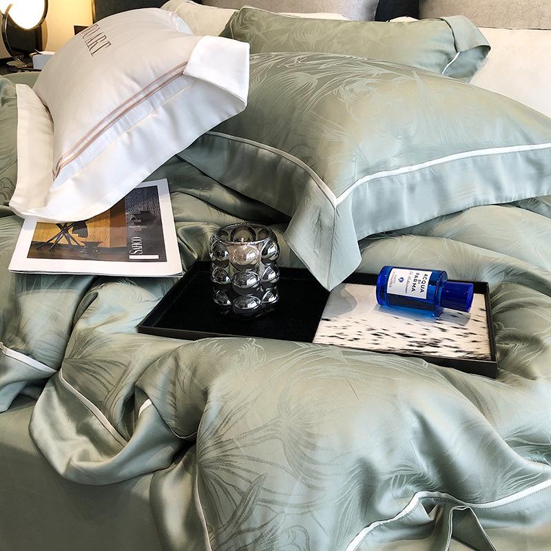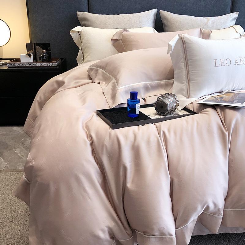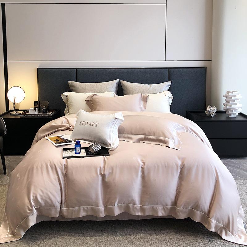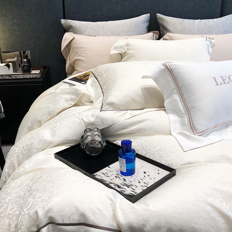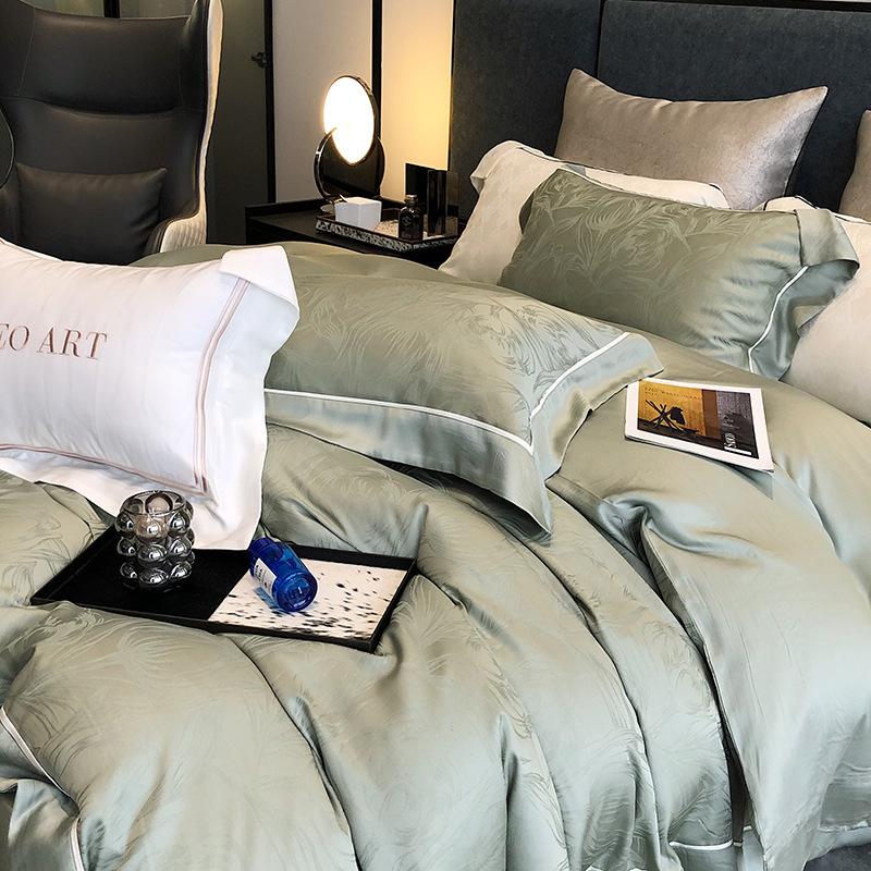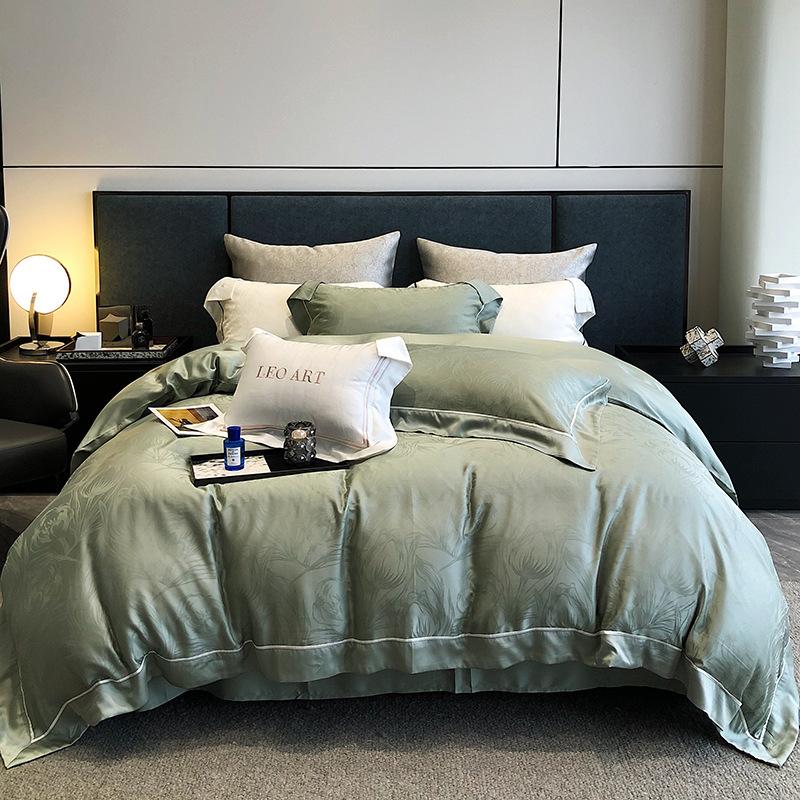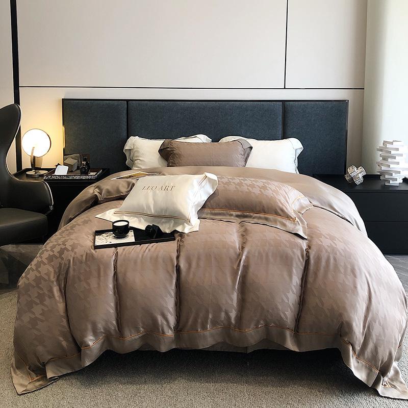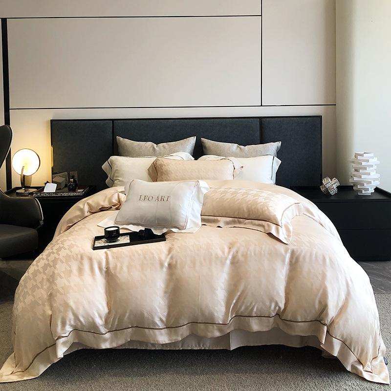 Juego de sábanas y edredón de satén de algodón puro de fibra larga, de cuatro piezas, de jacquard de seda helada, de lujo, de color liso, ligero, 60 unidades, novedad de 2023
