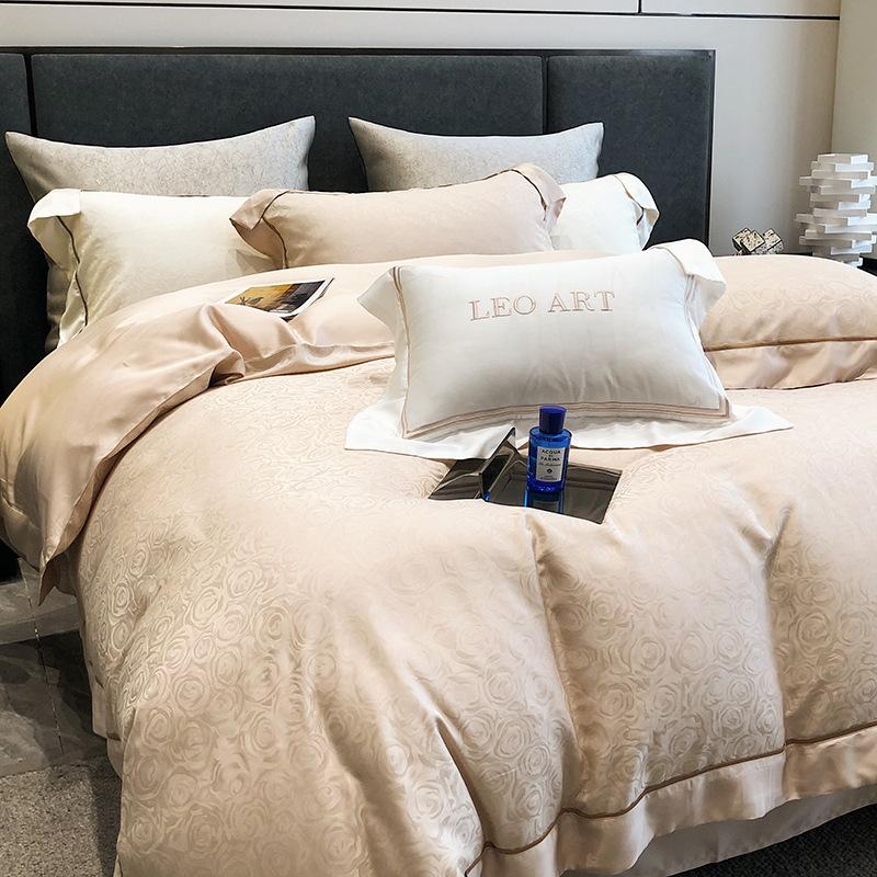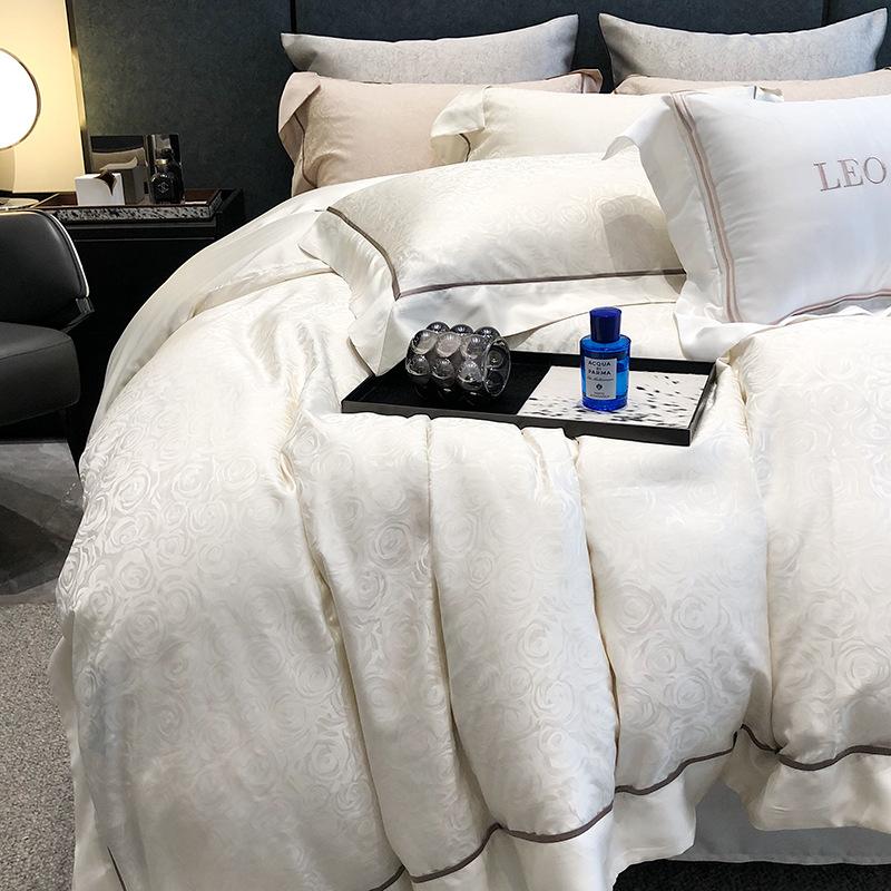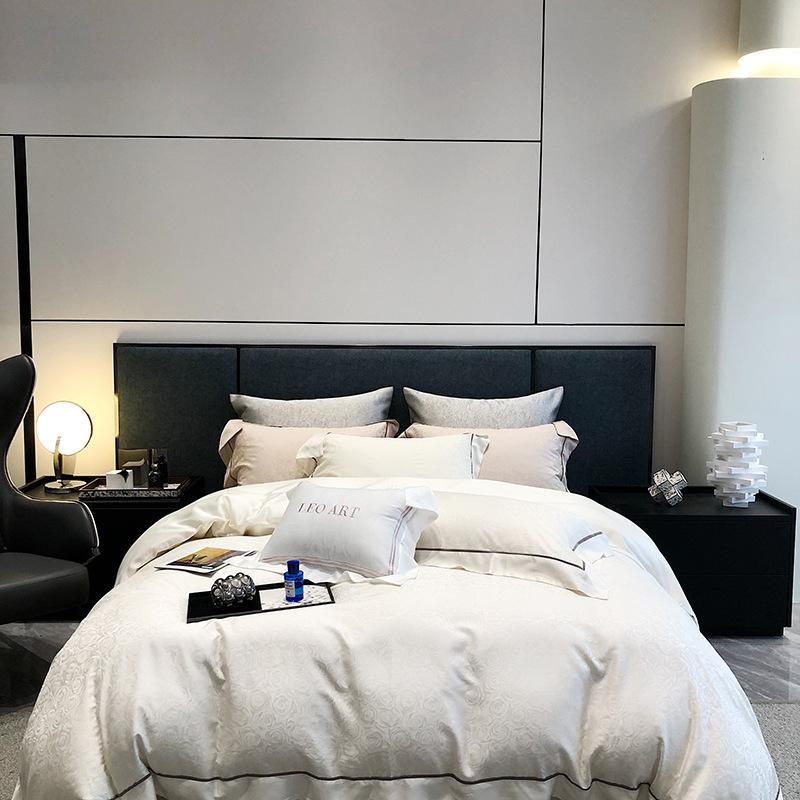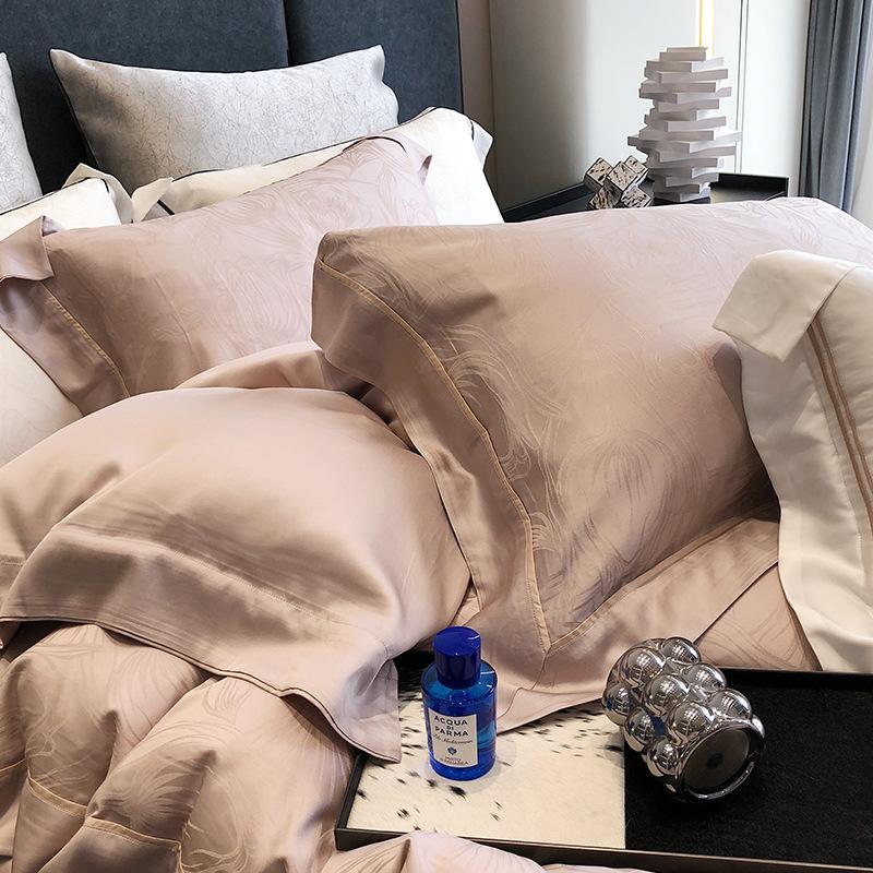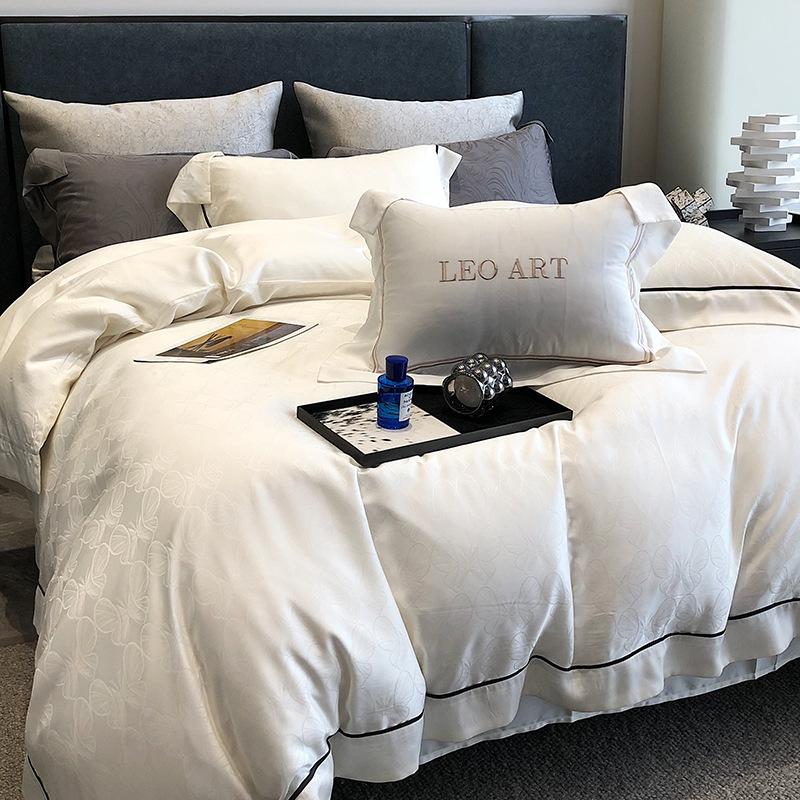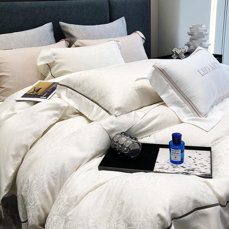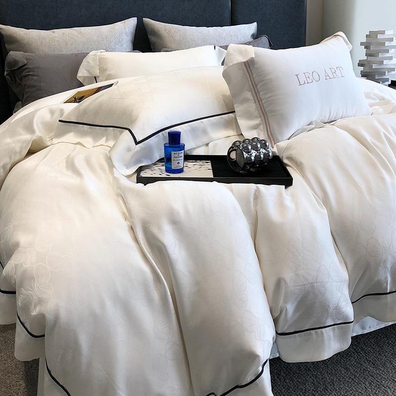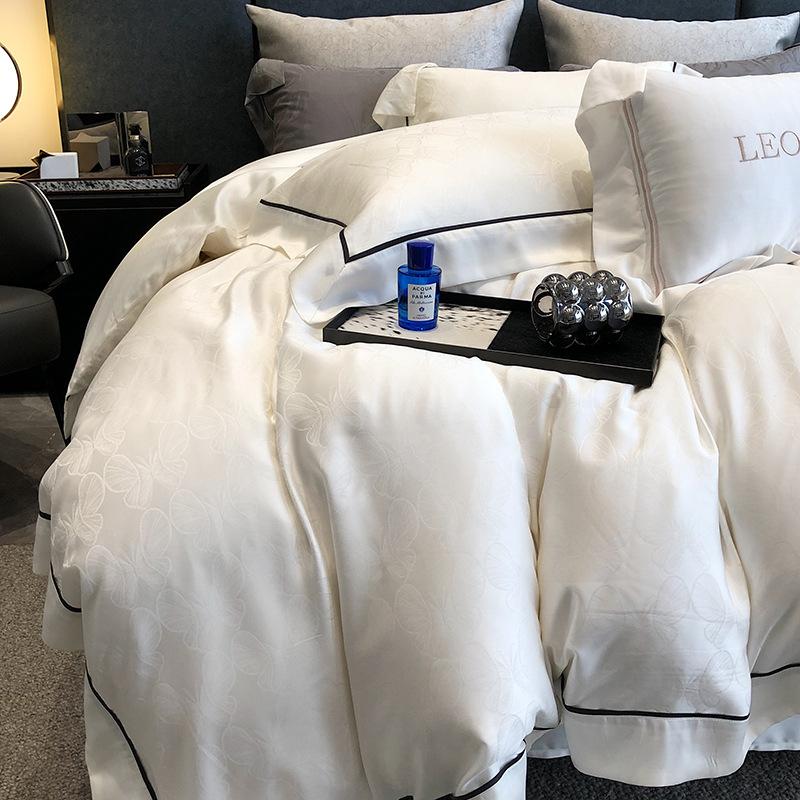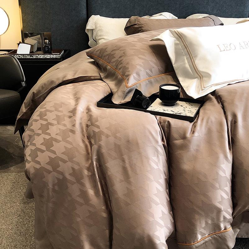 Juego de sábanas y edredón de satén de algodón puro de fibra larga, de cuatro piezas, de jacquard de seda helada, de lujo, de color liso, ligero, 60 unidades, novedad de 2023