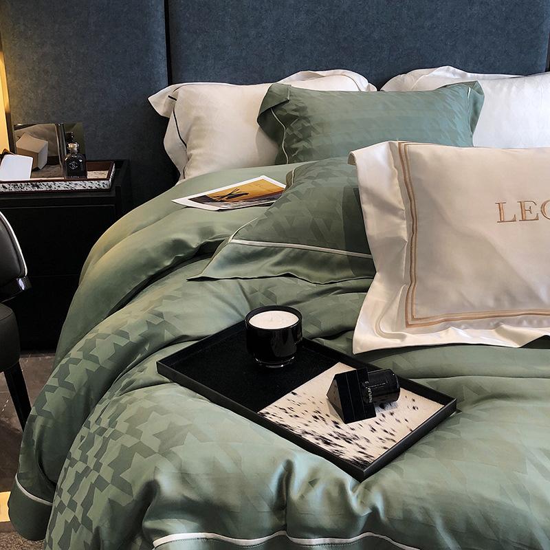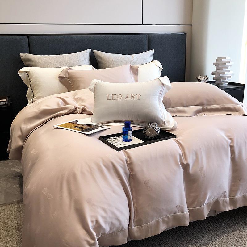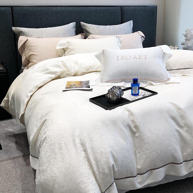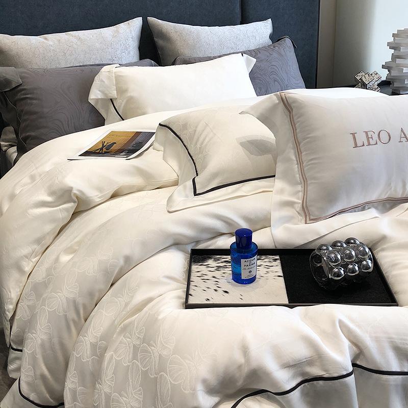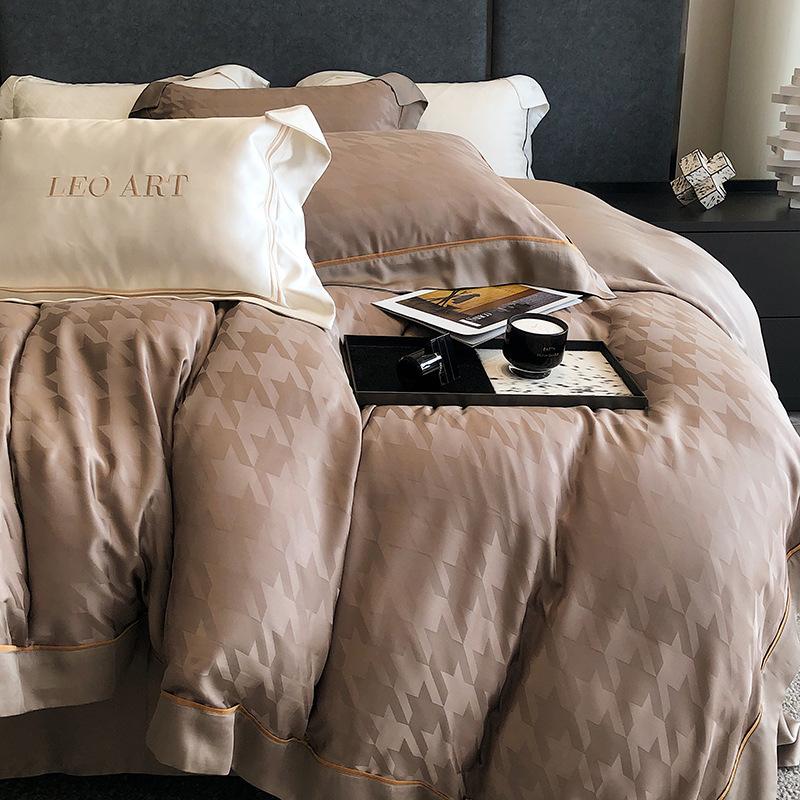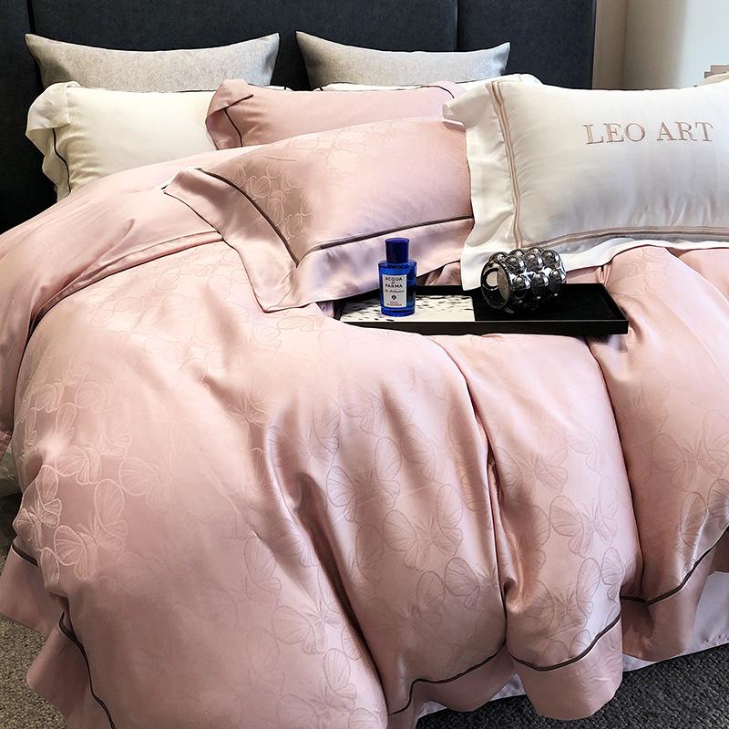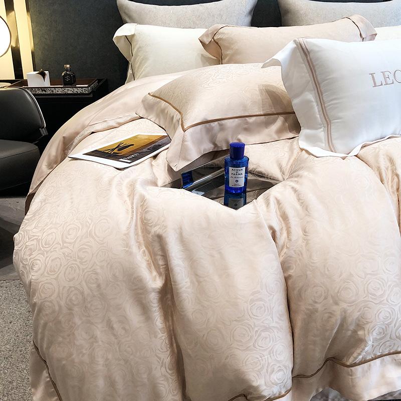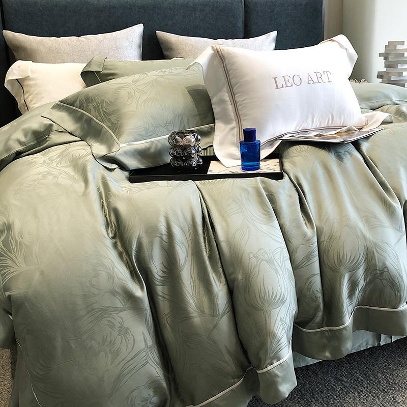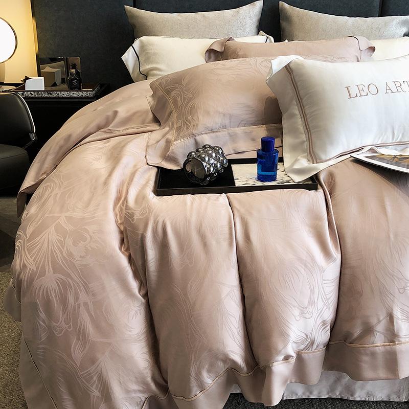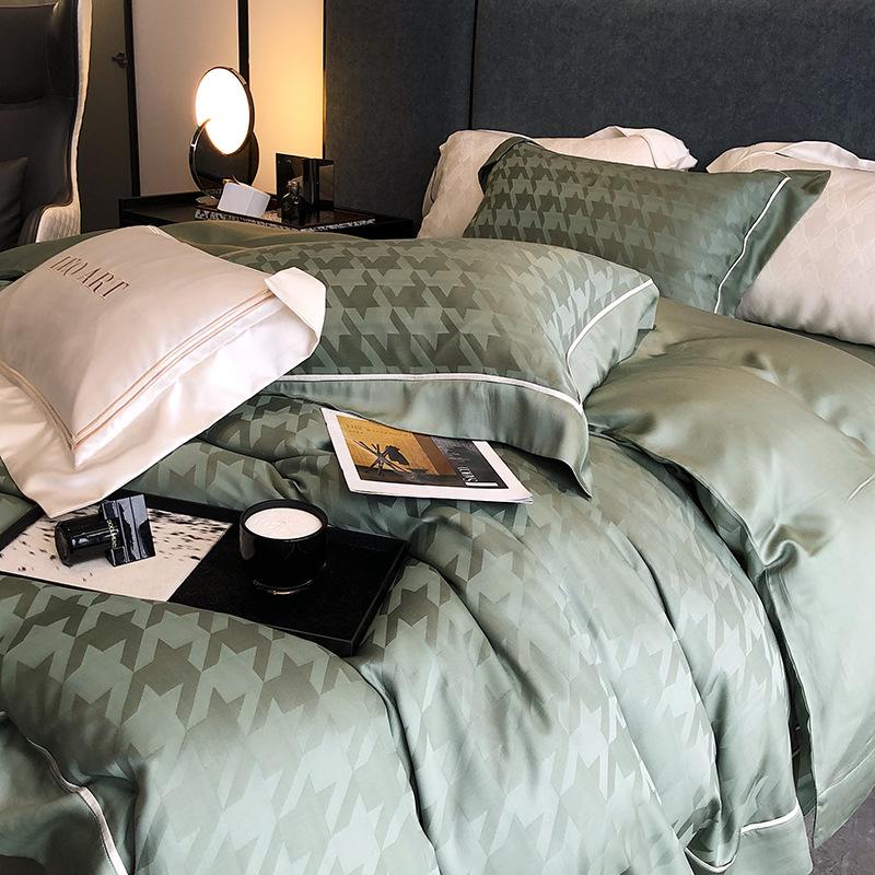 Juego de sábanas y edredón de satén de algodón puro de fibra larga, de cuatro piezas, de jacquard de seda helada, de lujo, de color liso, ligero, 60 unidades, novedad de 2023