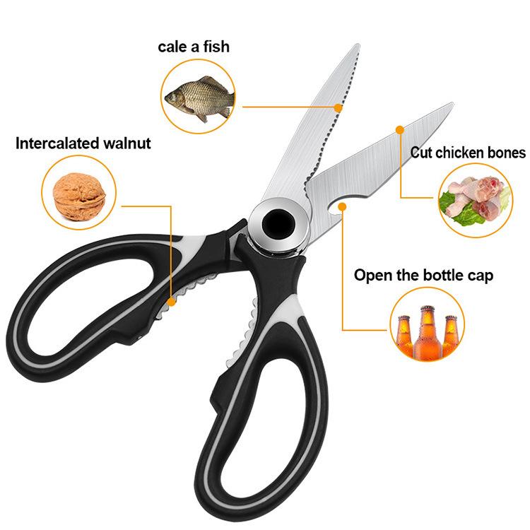 Usos: Se puede usar para cortar carne, huesos de pollo, verduras, raspar escamas de pescado, abrir nueces, abrir tapas de botellas de cerveza, etc.