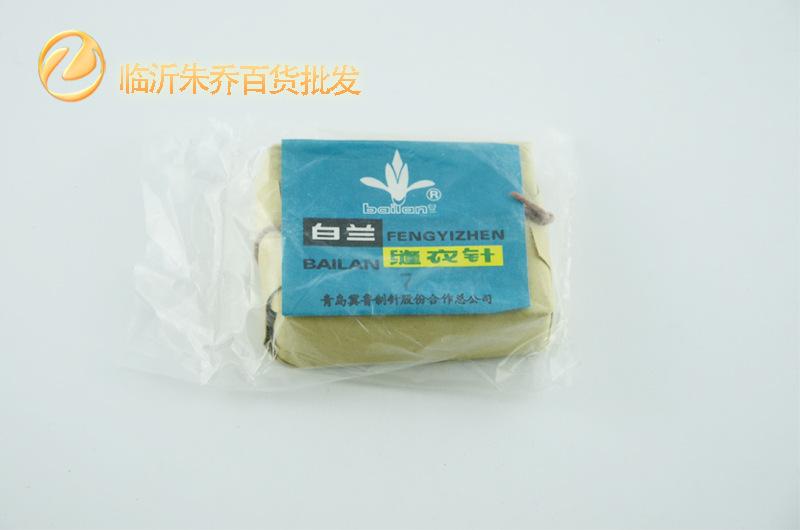 Aguja de coser blanca azul