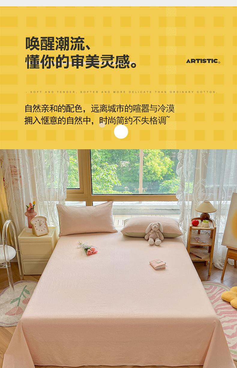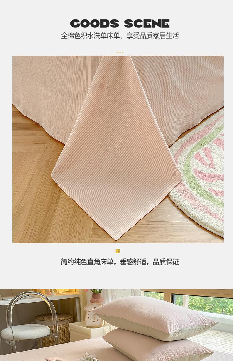 Sábana de algodón lavado de una pieza, 100% algodón, para dormitorio de estudiantes, individual, de verano, de color liso, con funda de almohada, juego de tres piezas