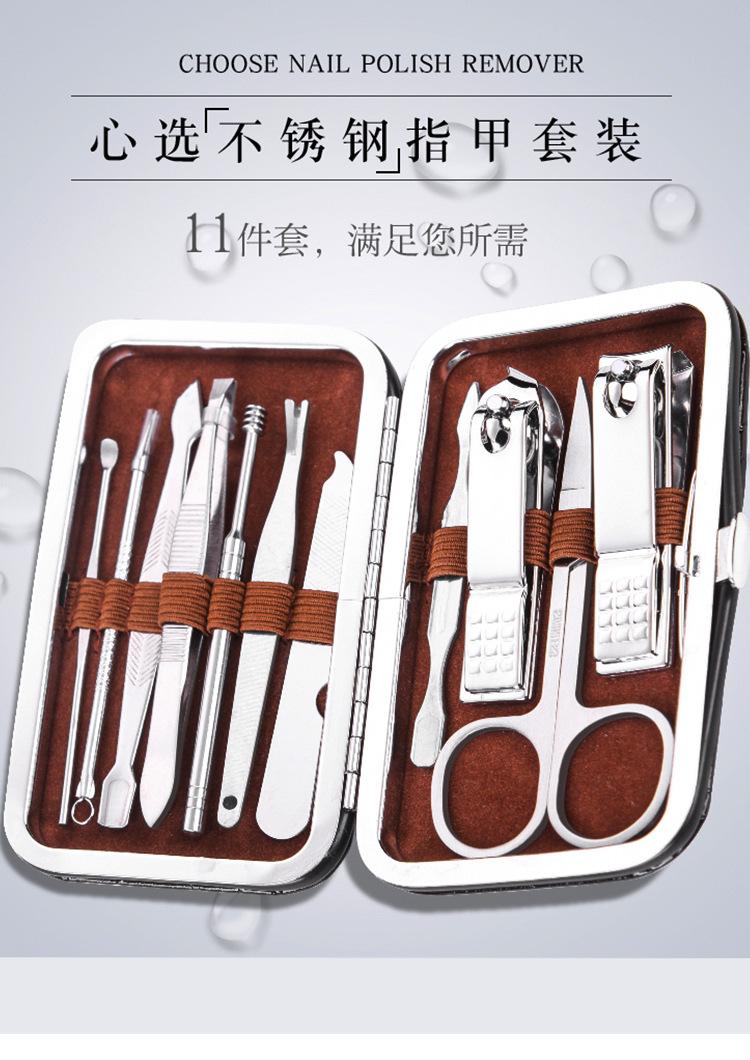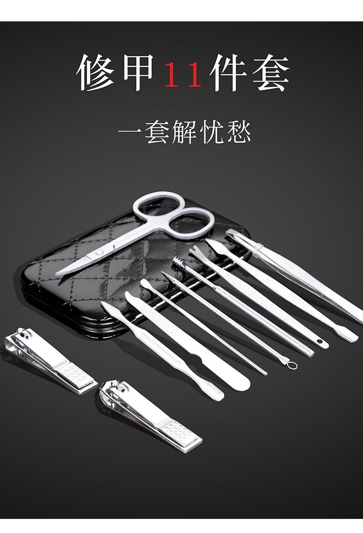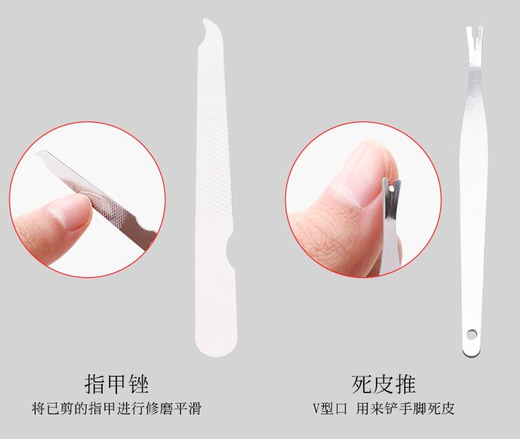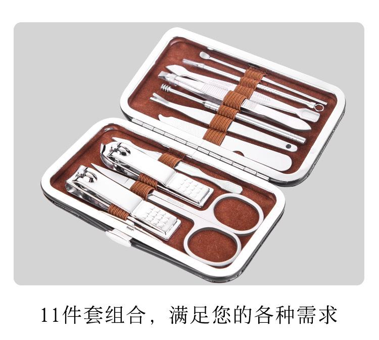 Cortaúñas con cuchara para el oído para el hogar, cortaúñas para pedicura, tijeras diagonales portátiles, traje de acero inoxidable (Juego de 11 piezas)