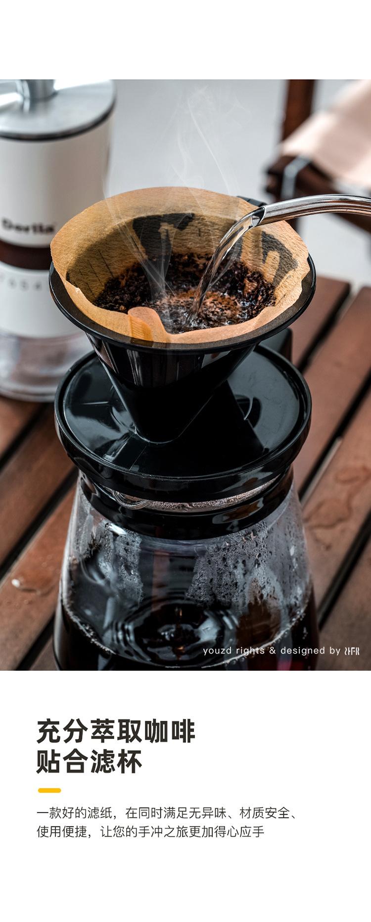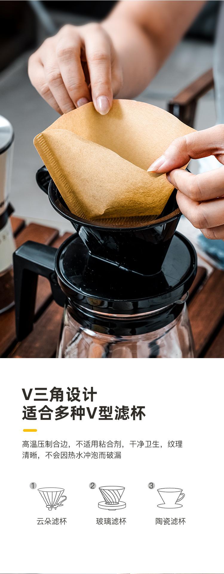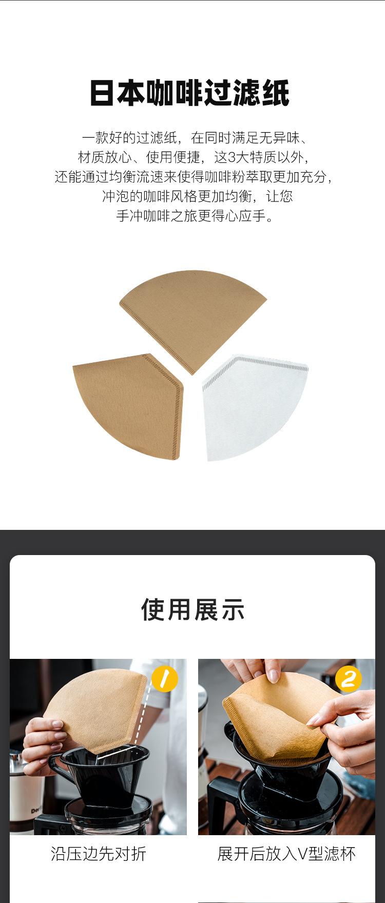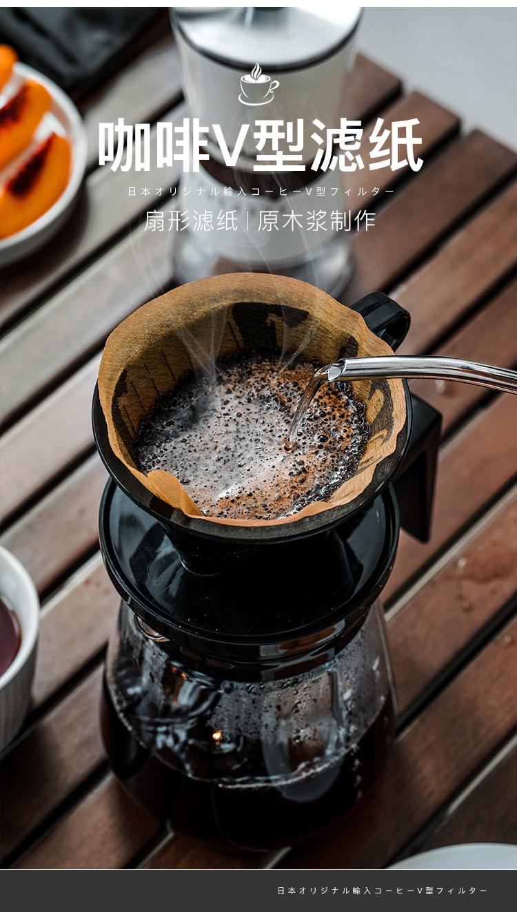 Papel de filtro de café importado de Japón, malla de filtro perforada a mano, bolsa de filtro de goteo de pulpa de madera en forma de cono en forma de abanico para máquina de café americana