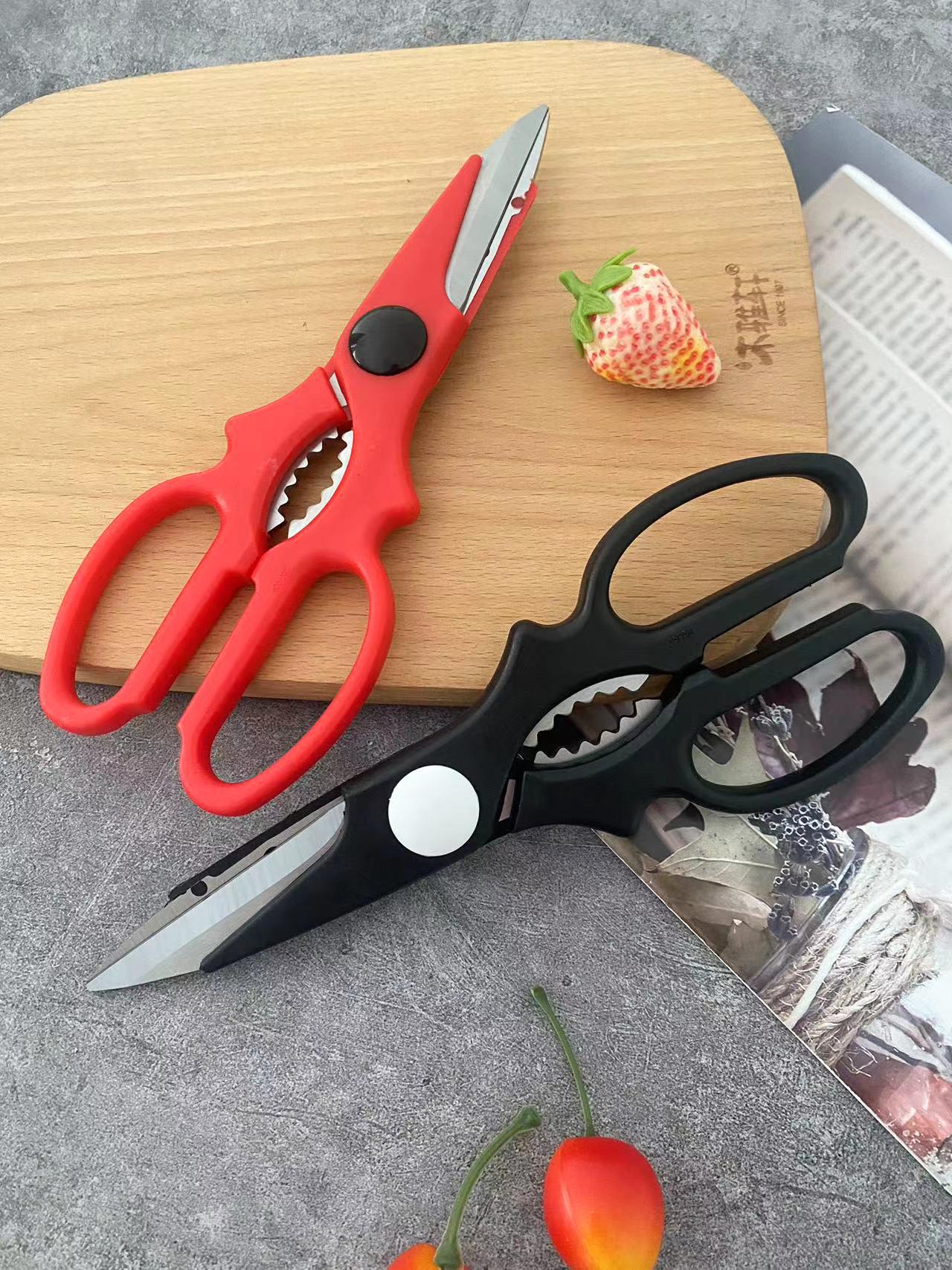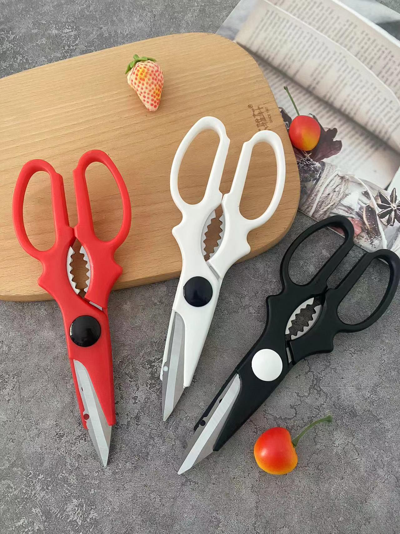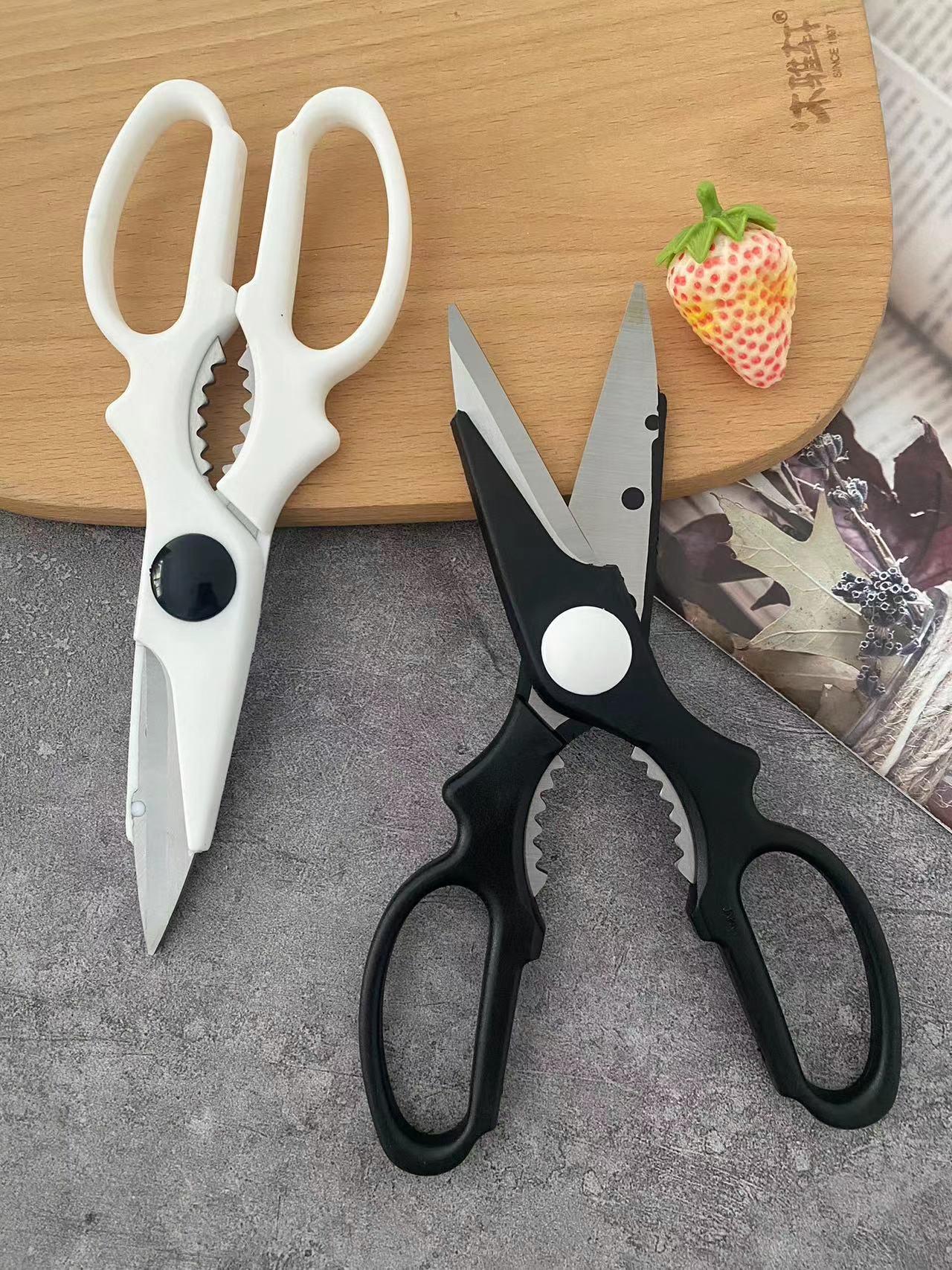 Tijeras de cocina multifuncionales de acero inoxidable en stock de fábrica, tijeras para raspar escamas de pescado, tijeras para alimentos, tijeras para el hogar, tijeras resistentes para huesos de pollo, clip de nuez