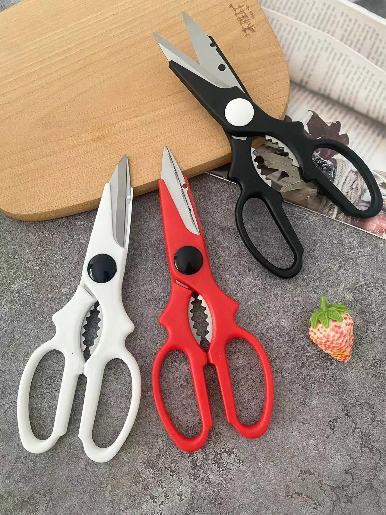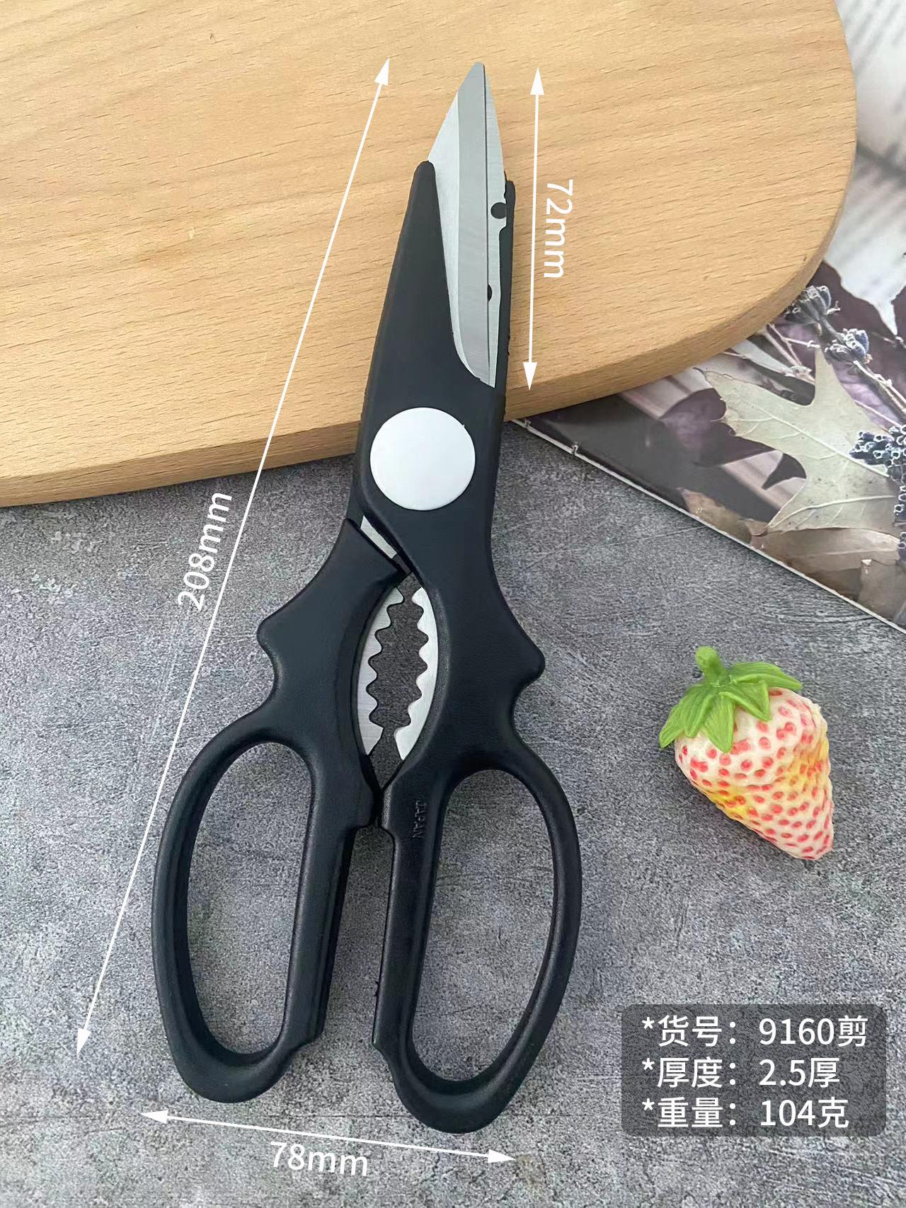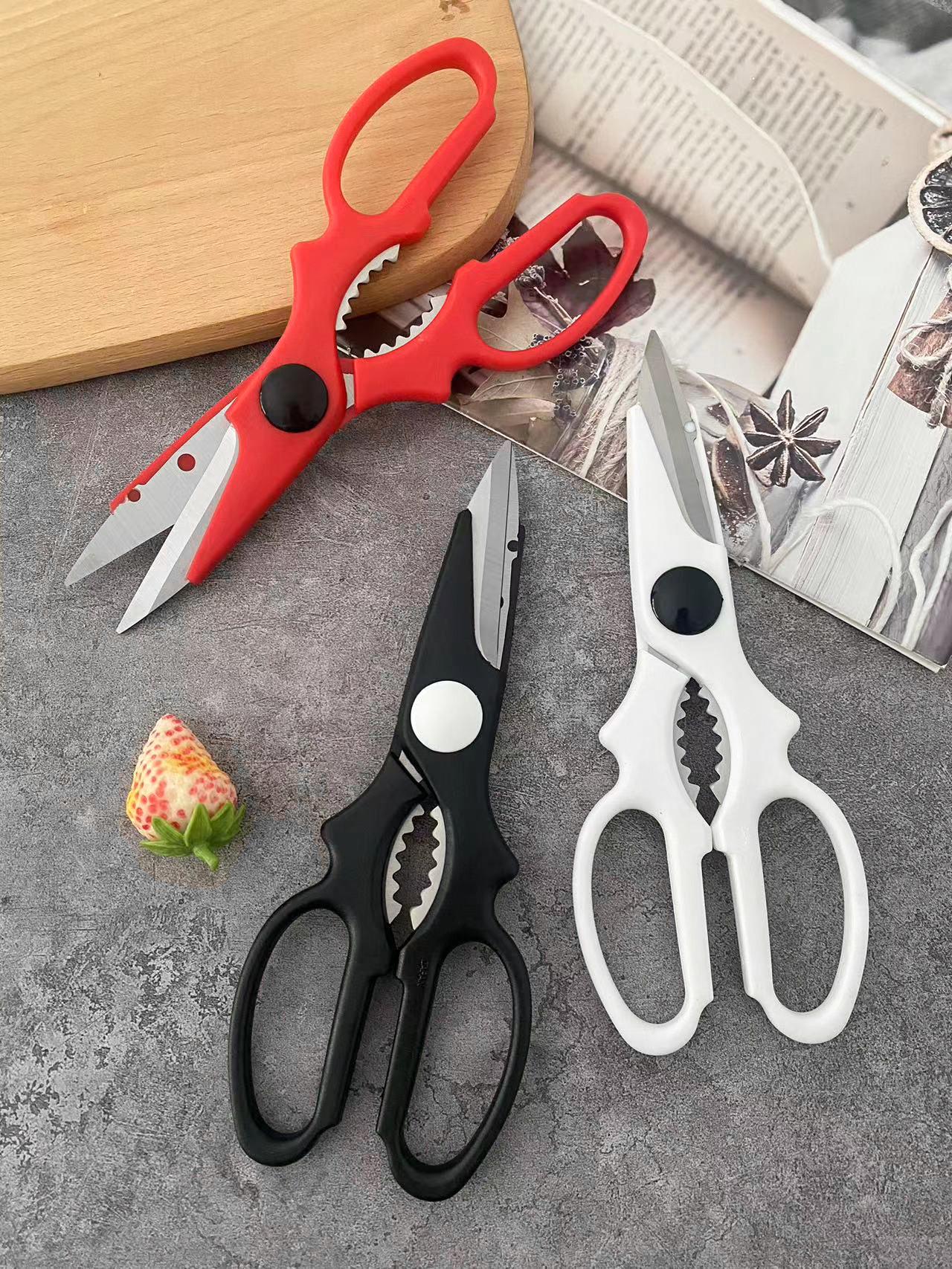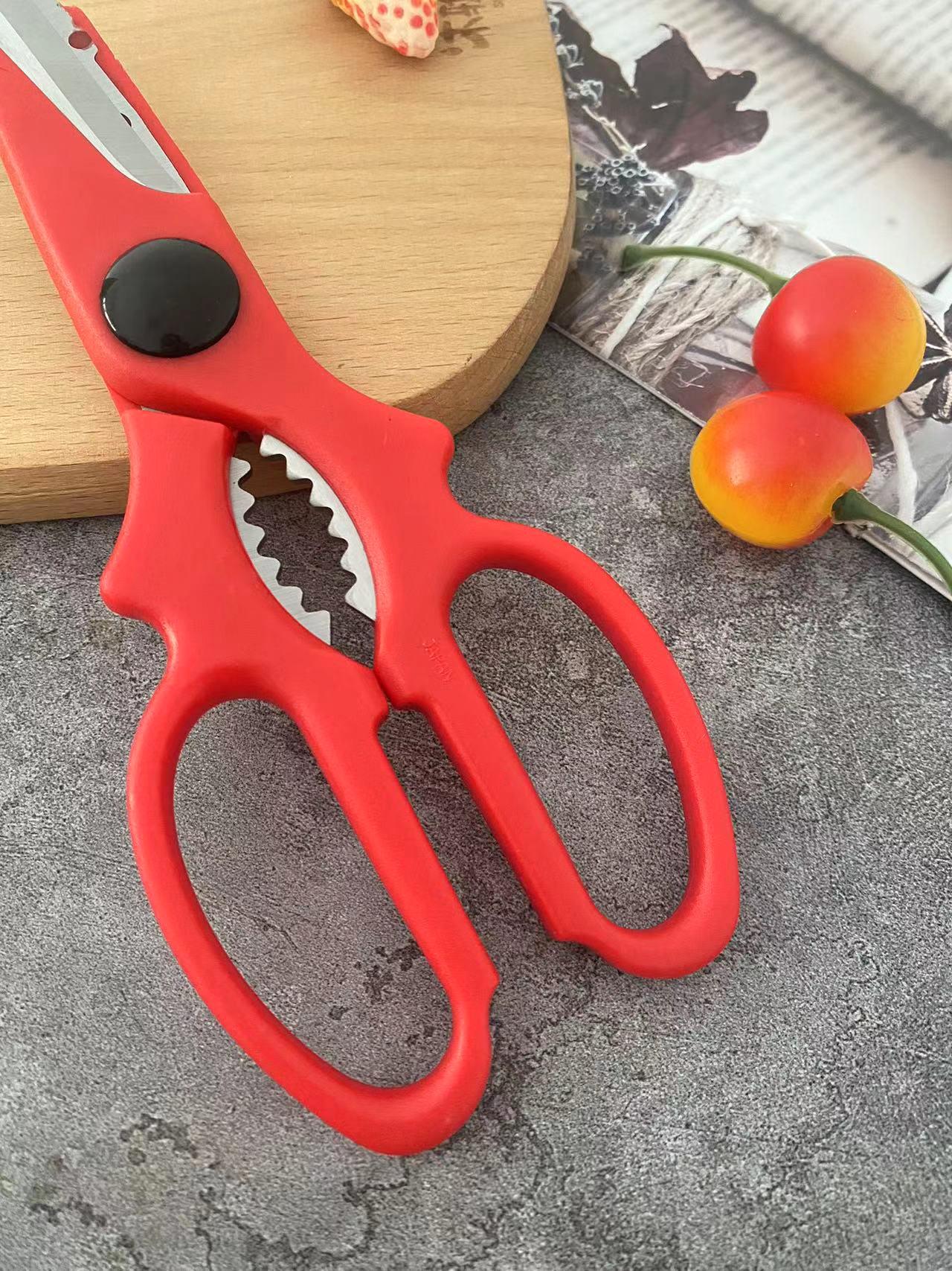 Tijeras de cocina multifuncionales de acero inoxidable en stock de fábrica, tijeras para raspar escamas de pescado, tijeras para alimentos, tijeras para el hogar, tijeras resistentes para huesos de pollo, clip de nuez