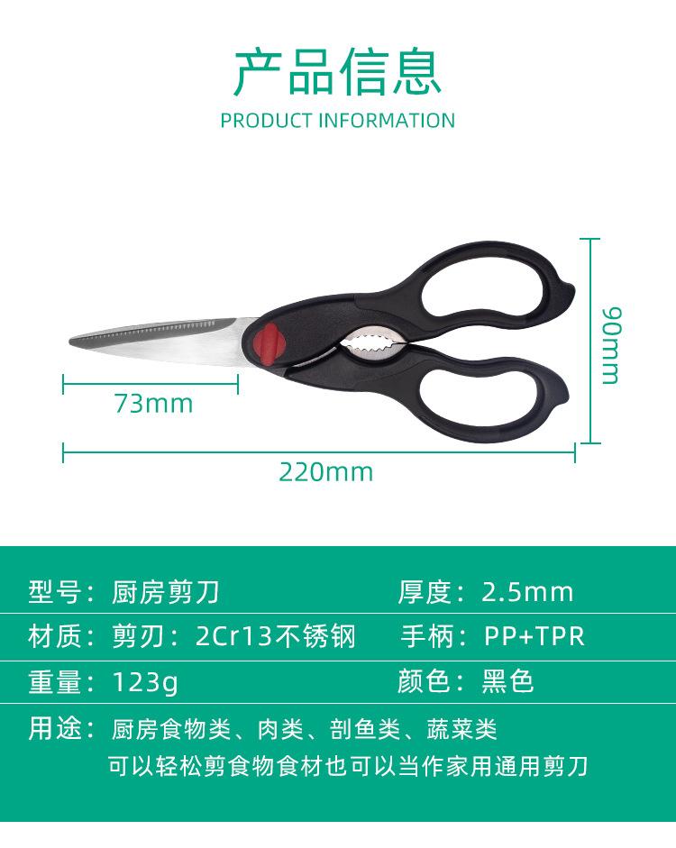 Tijeras de cocina multiusos de acero inoxidable, venta al por mayor de fábrica, tijeras de cocina para el hogar, tijeras para huesos de pollo.