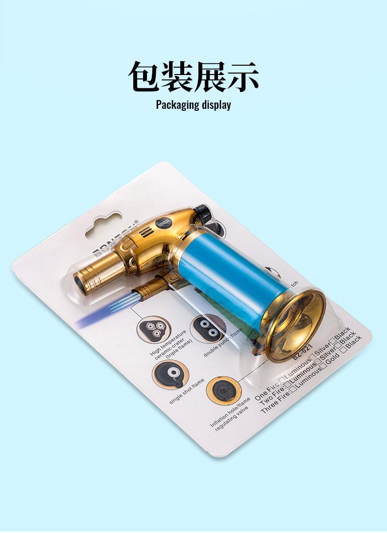 Encendedor de antorcha luminoso BZ-021, inflable, a prueba de viento, con punta de llama azul recta, para cigarros, moxibustión, que se puede invertir para bloquear el fuego.