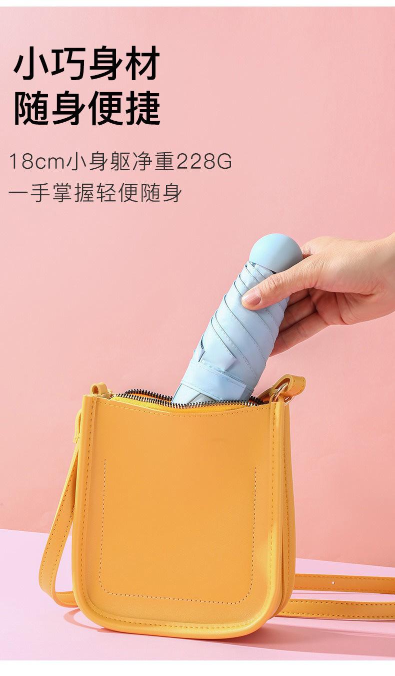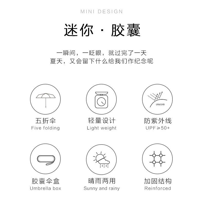 Paraguas portátil de cinco pliegues, resistente a los rayos UV, al sol y a la lluvia, de doble uso, de goma negra, plegable, minicápsula, protector solar.