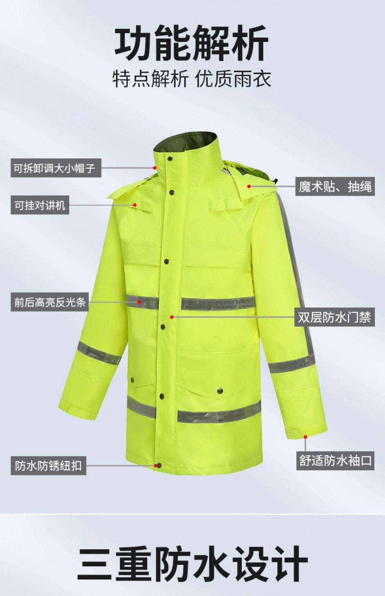 Impermeable compuesto de tres capas para tráfico pesado, impermeable dividido para adulto, para exteriores, patrulla de carretera de alta velocidad, traje impermeable reflectante