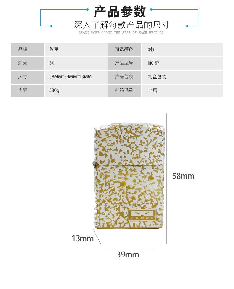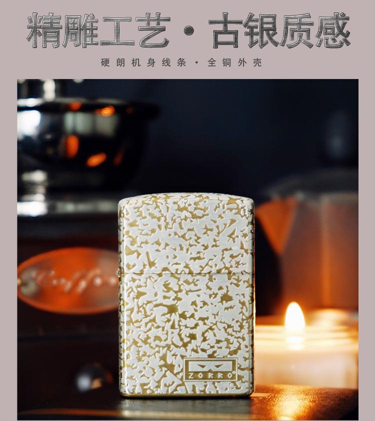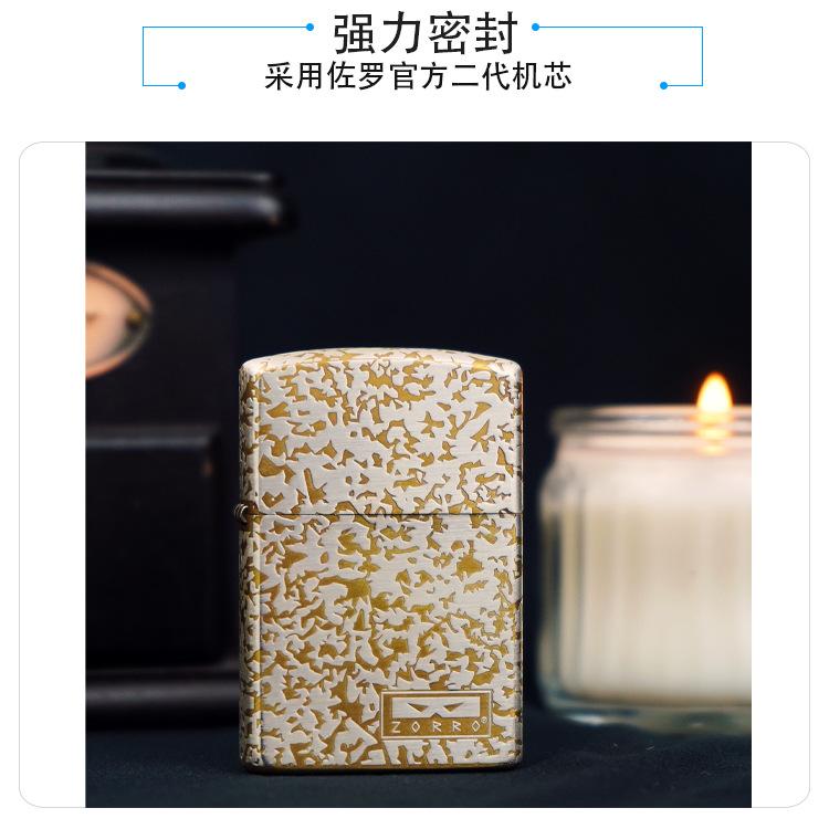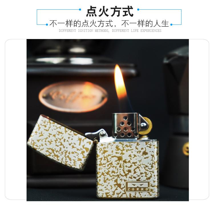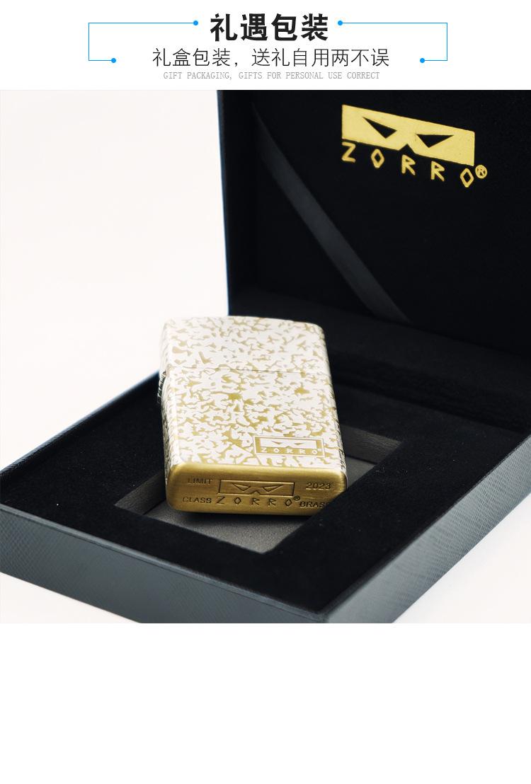 Encendedor de queroseno de grano de oro y cobre de segunda generación ZORRO ZORRO, fabricantes de encendedores de regalo de alta gama, venta al por mayor transfronteriza