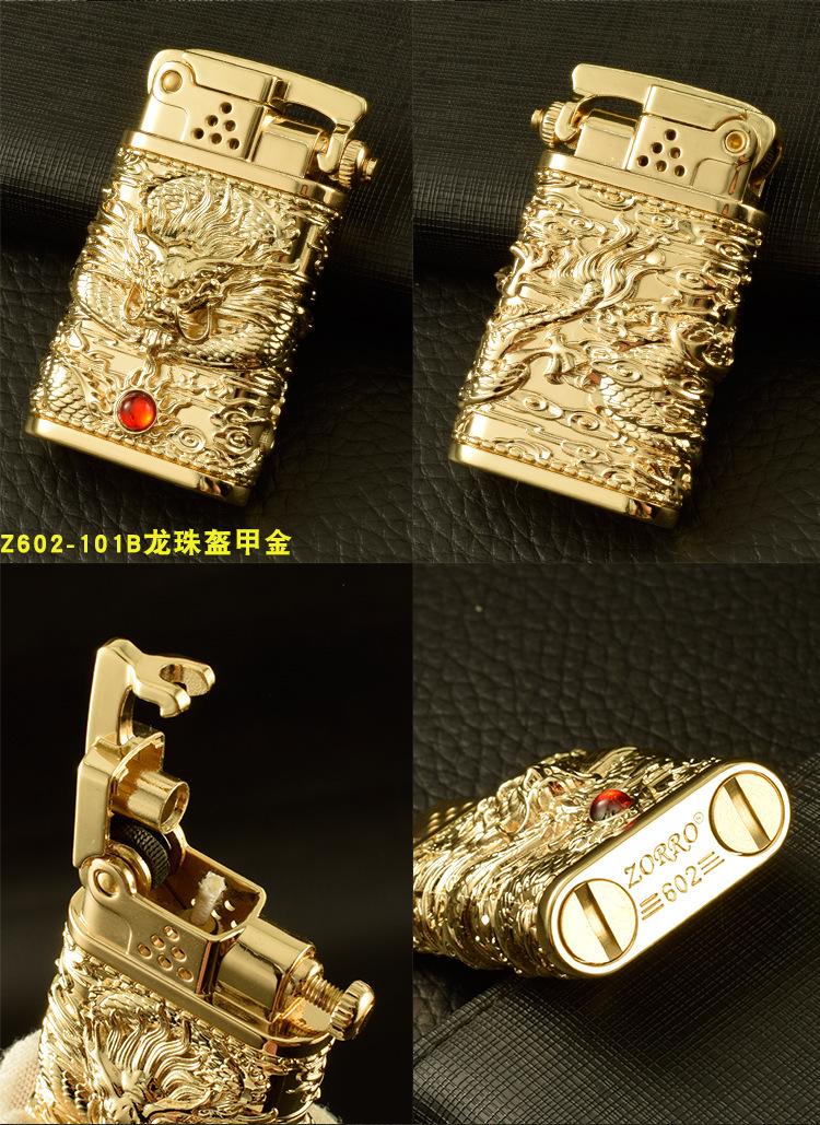 Encendedor de Queroseno Zorro Z602, Encendedor Creativo de Balancín con Relieve de Flor de la Suerte, A partir de una pieza