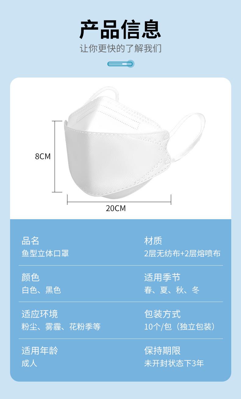 Mascarilla kn95 en forma de pez 3d tridimensional tipo de colgar de la oreja transpirable a prueba de polvo adulto empaquetado individualmente mascarilla bicolor blanco y negro al por mayor
