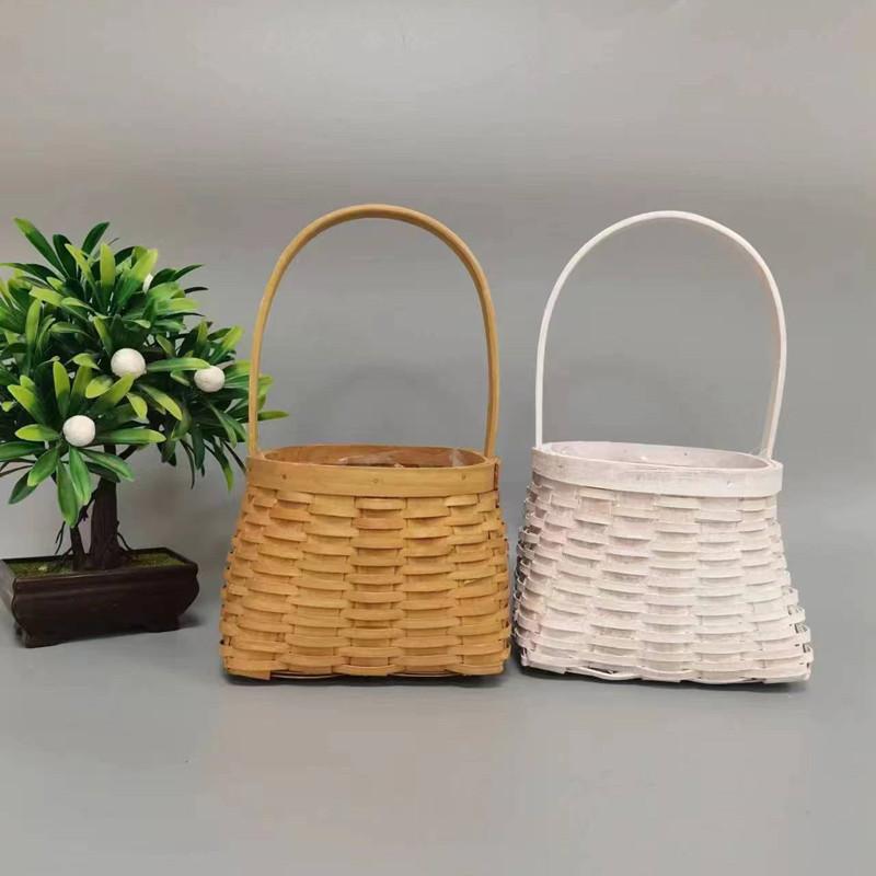 Cesta de madera tejida a mano, cesta de flores decorativa, cesta de flores portátil, cesta de flores de ratán decorativa torcida a mano para uso diario en el hogar