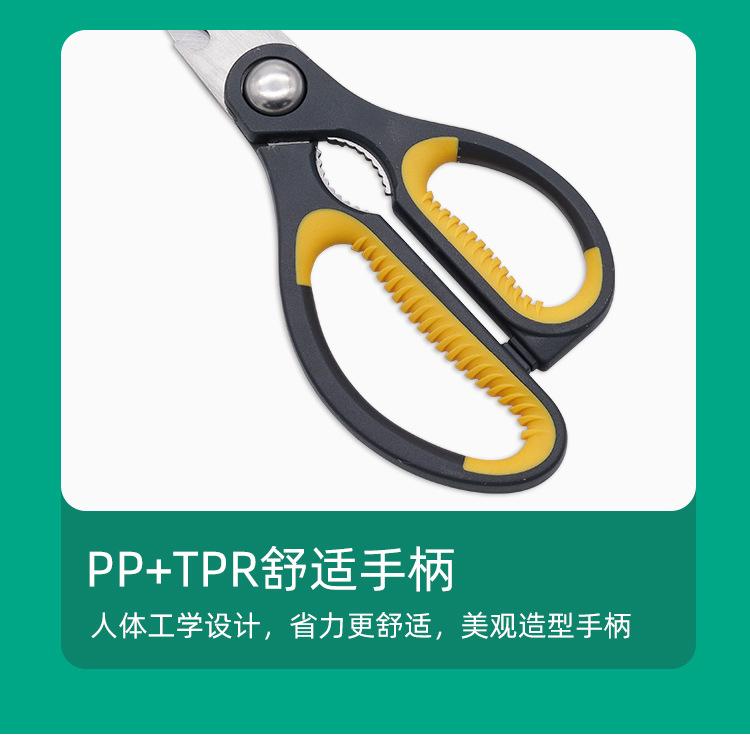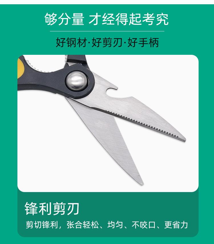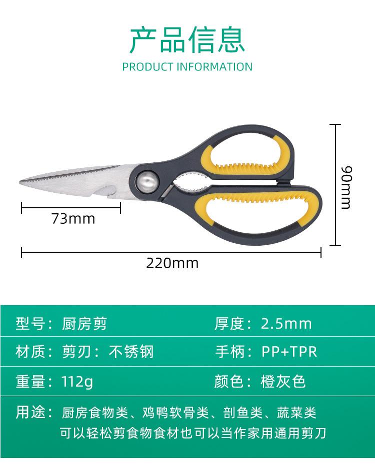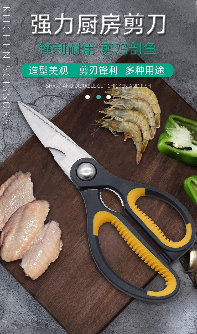 Tijeras de cocina para el hogar al por mayor de fábrica, tijeras multiusos, abridor de botellas, tijeras para huesos de pollo, tijeras de acero inoxidable, tijeras para carne y alimentos.