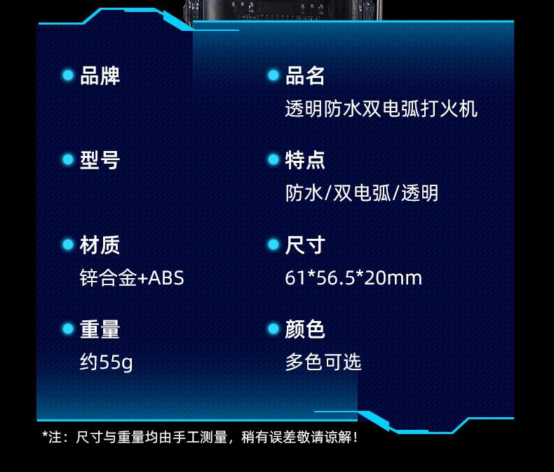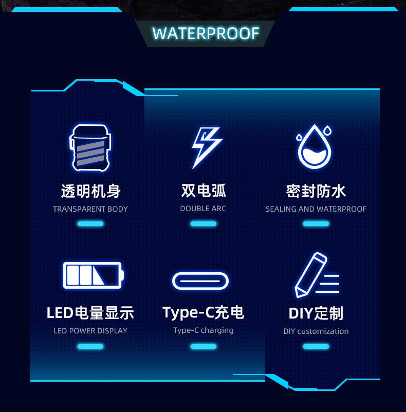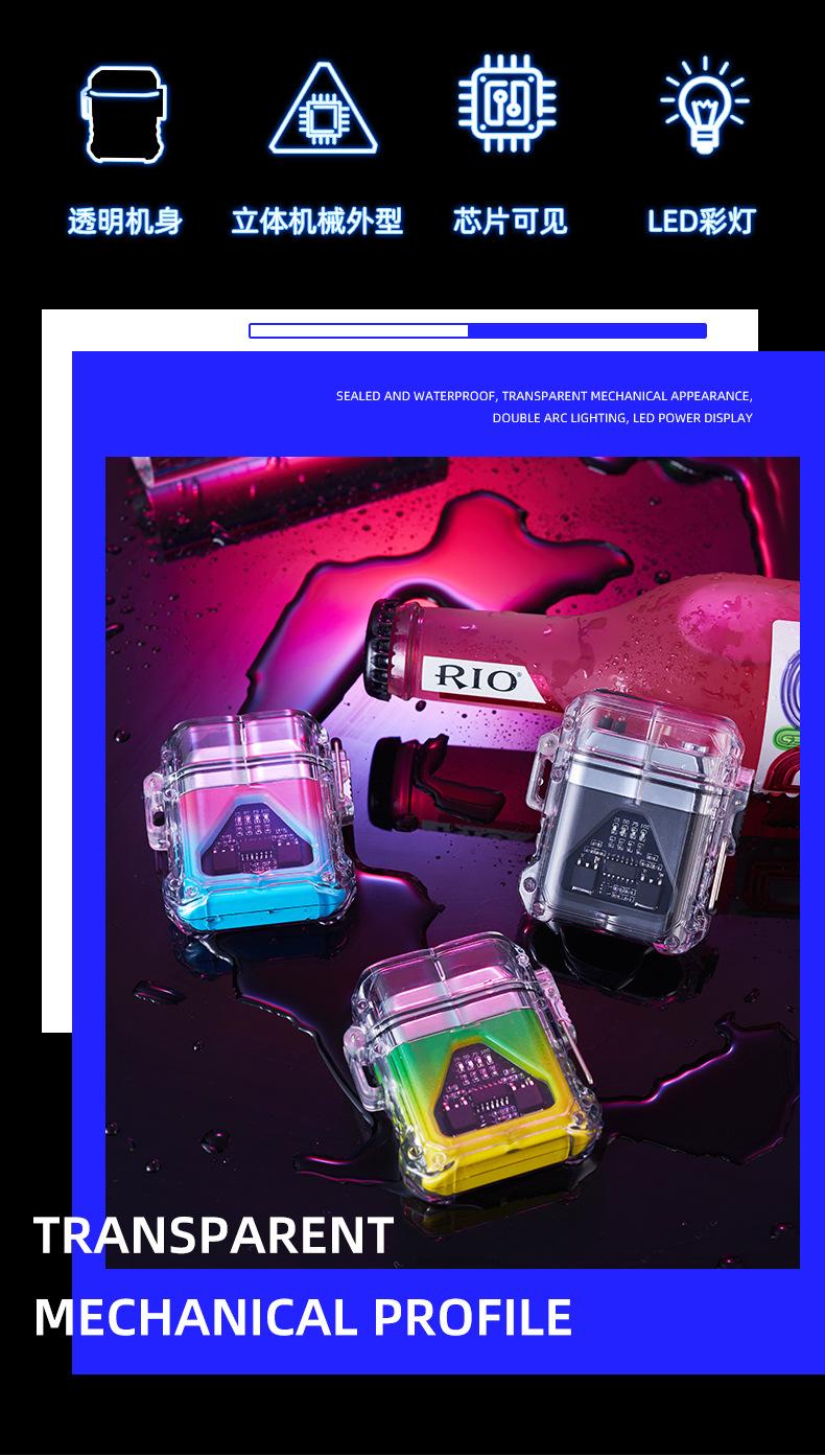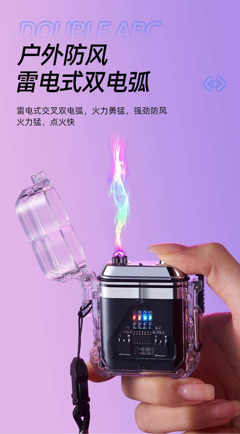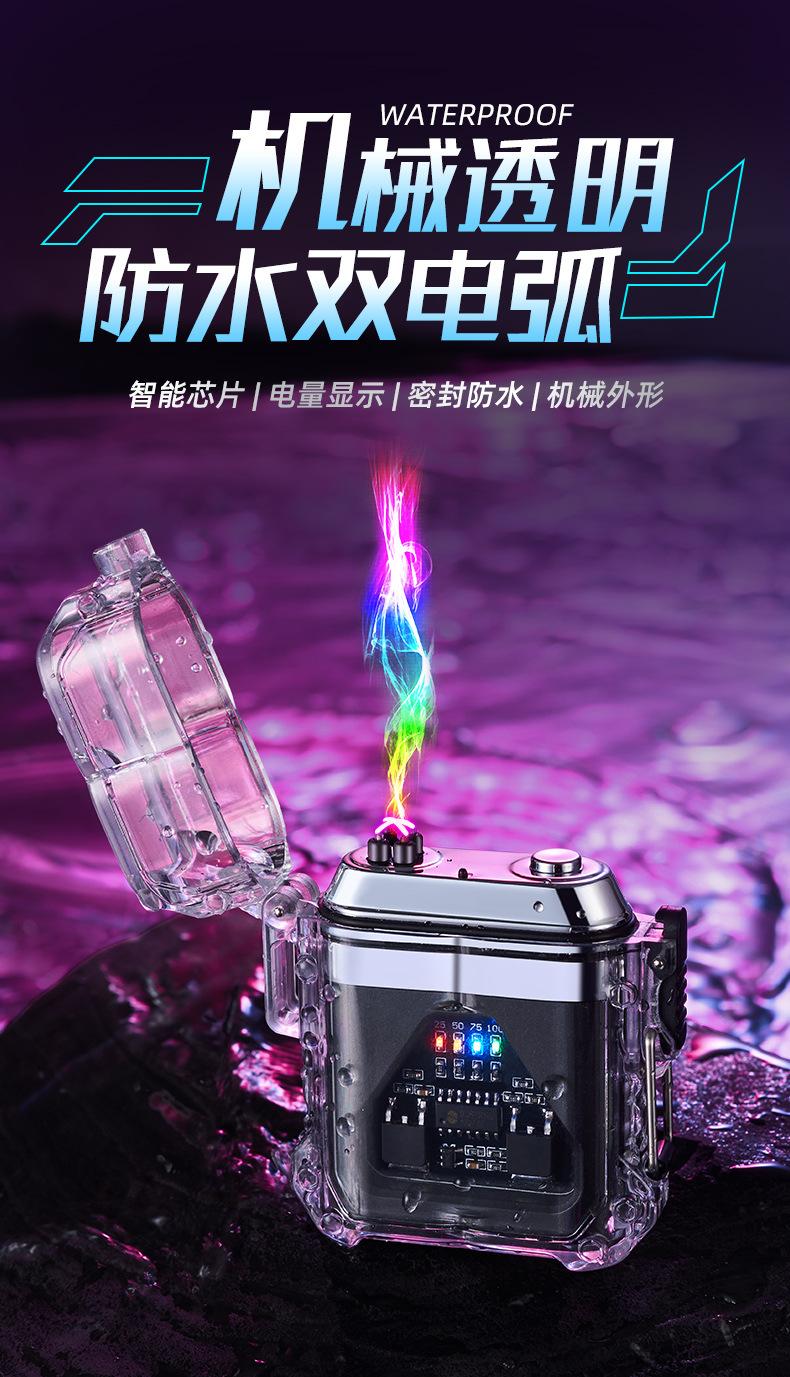 Encendedor Electrónico de Pulso Impermeable con Carcasa Transparente para Exterior a Prueba de Viento Encendedor Impermeable de Doble Arco para Cigarrillos Precio Especial al Mayoreo