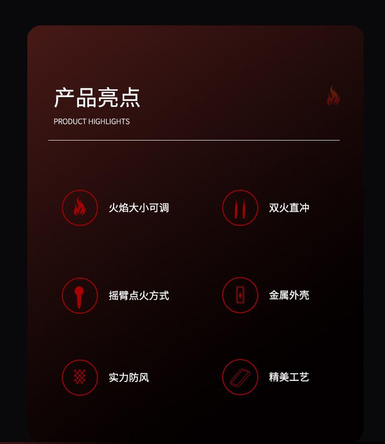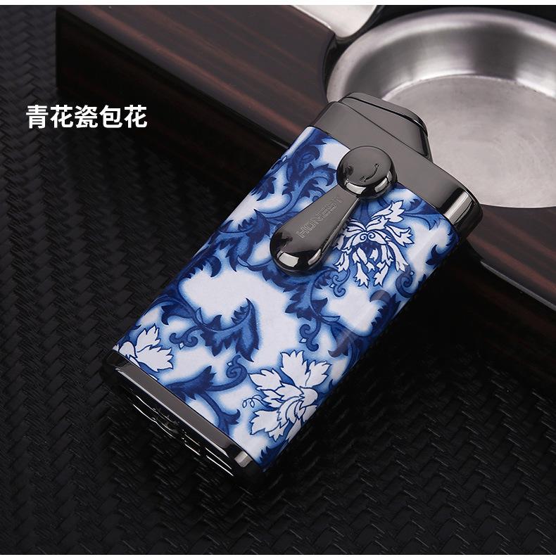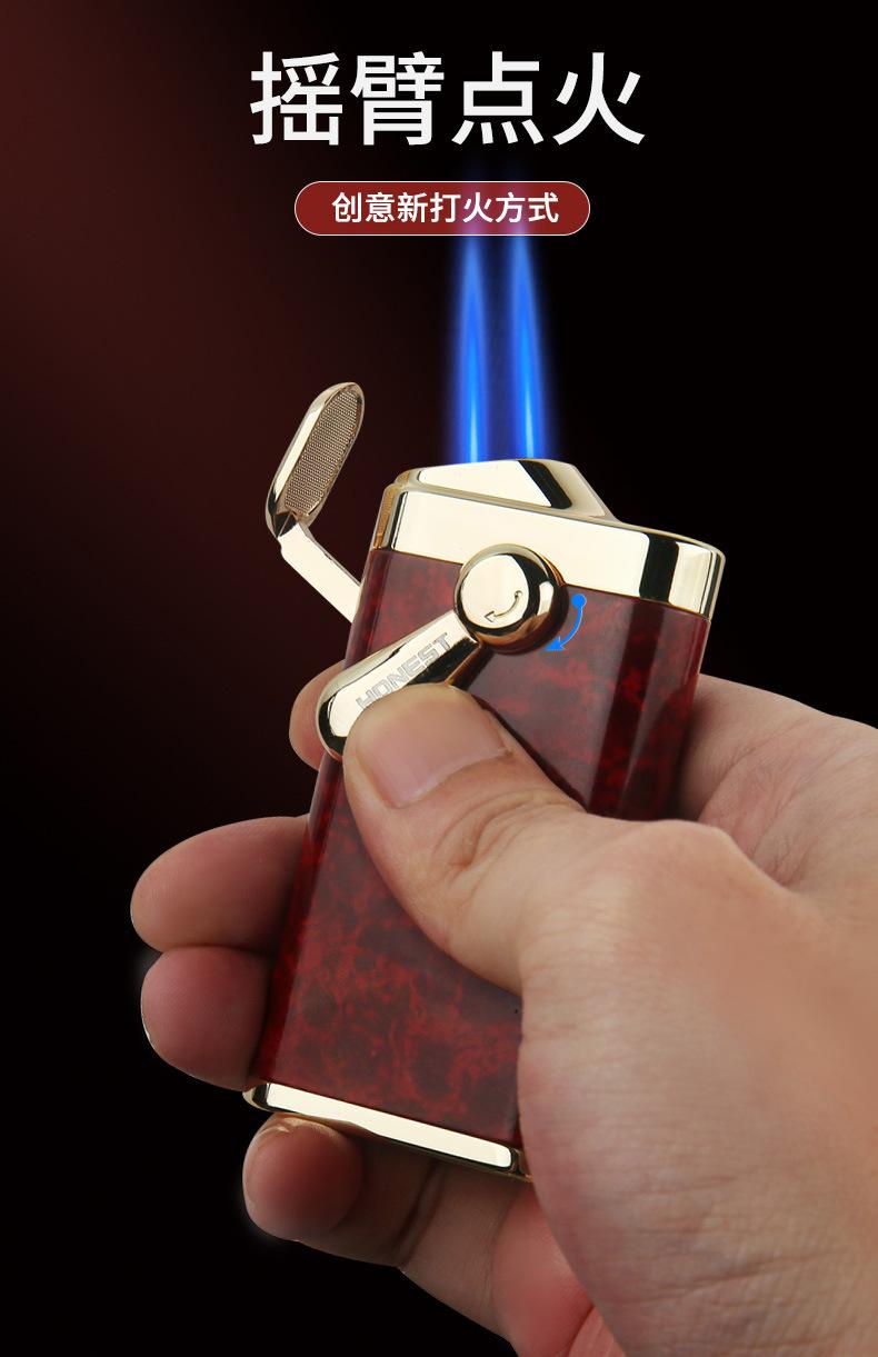 Encendedor de viento directo Baicheng Shake Cool 1 de doble fuego, de metal, con taladro para puros, pistola pulverizadora inflable visual, venta al por mayor