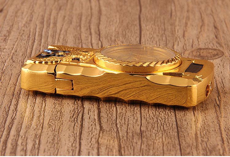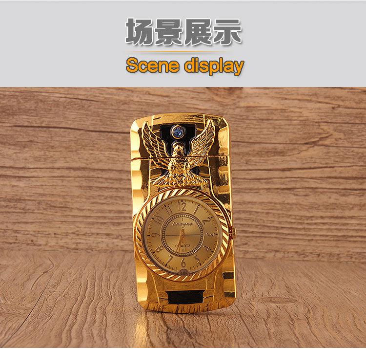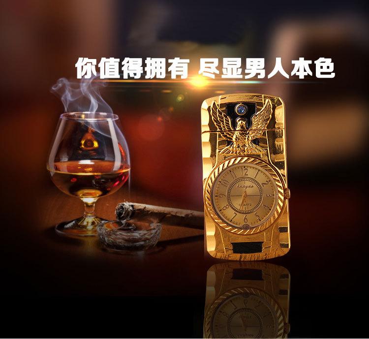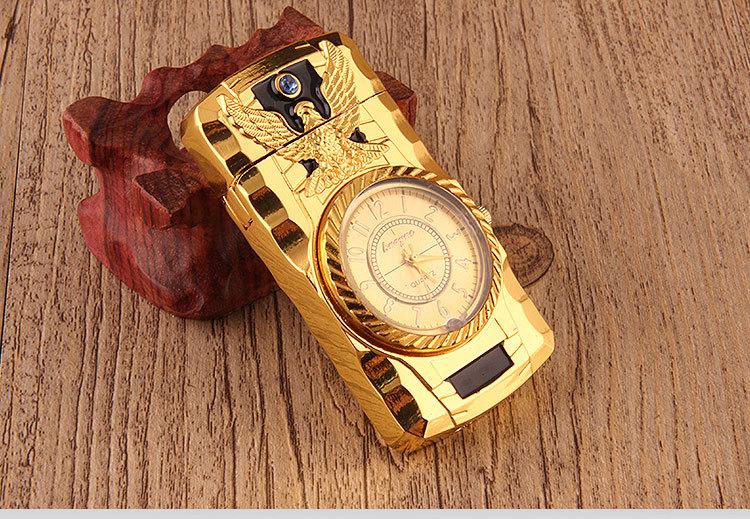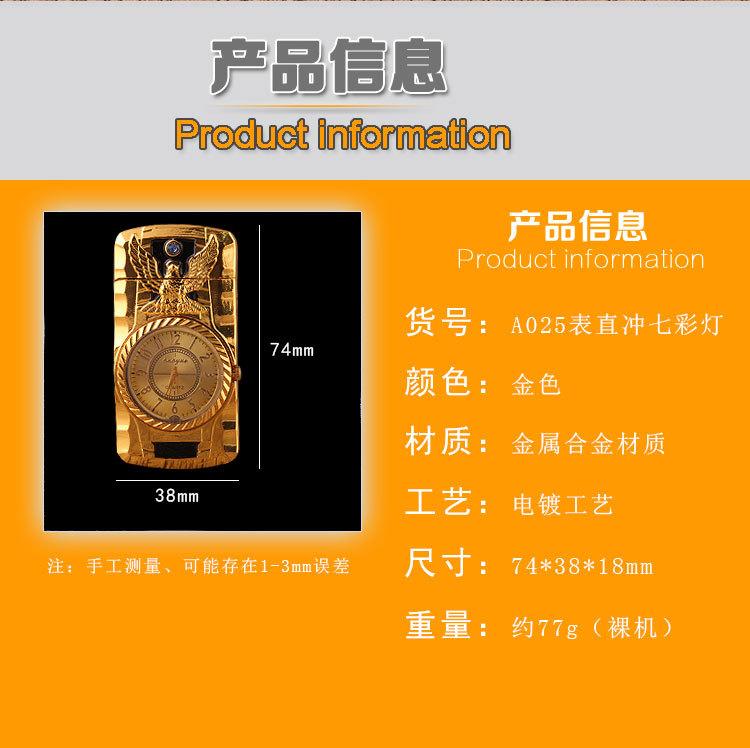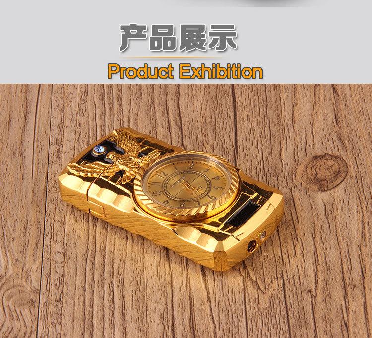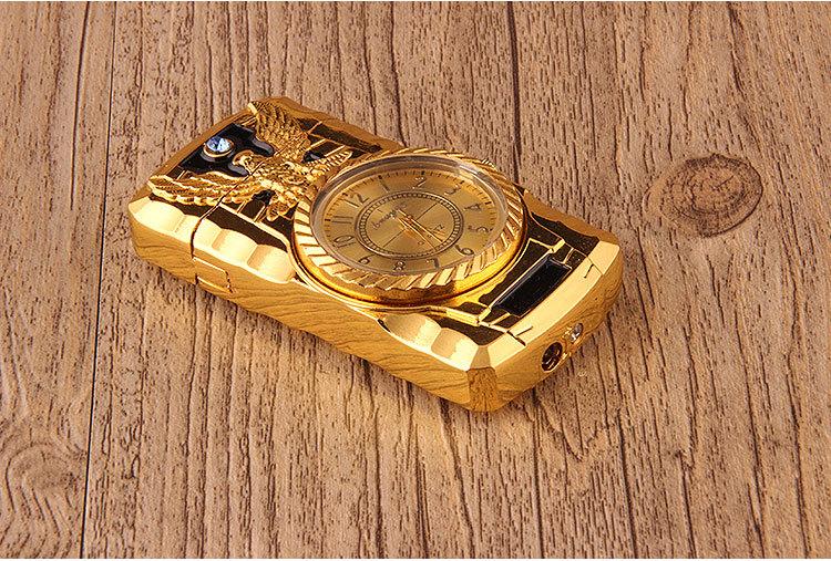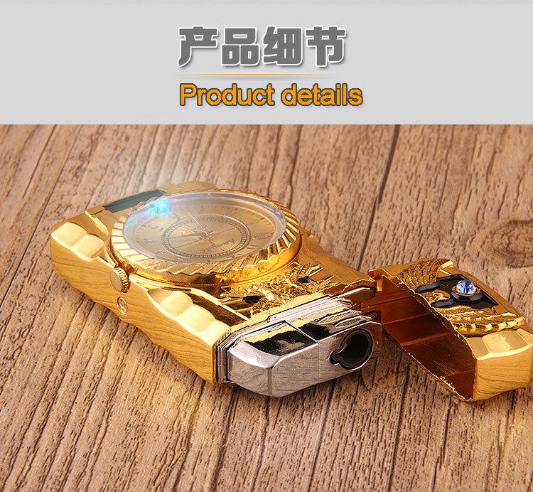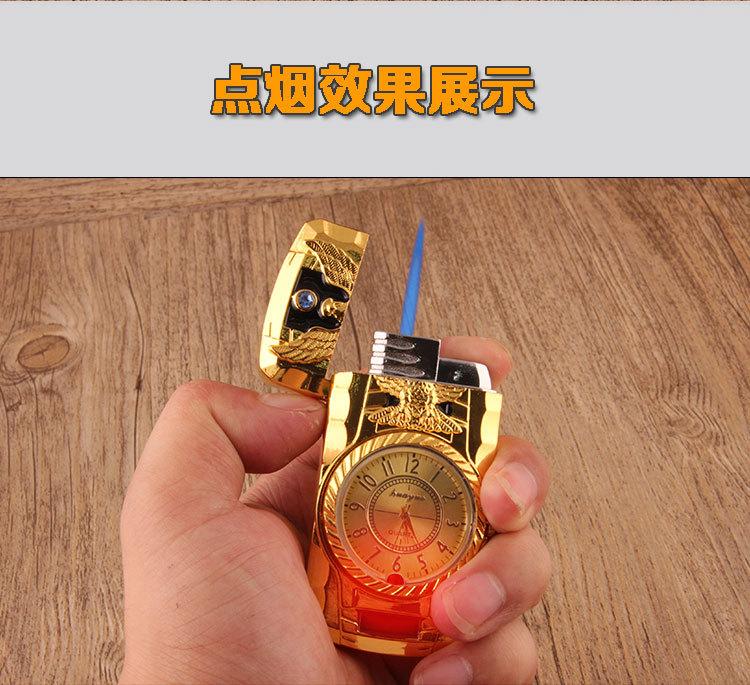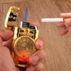 Encendedor inflable creativo de perforación directa con luces de colores, reloj electrónico, encendedor de gas a prueba de viento