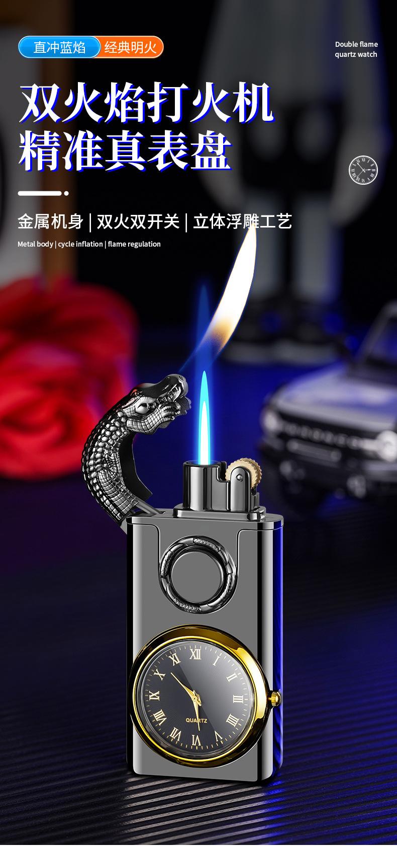 Compra Encendedor inflable creativo de doble fuego con relieve tridimensional, multifunción, con placa de reloj, encendedor directo, se puede personalizar con publicidad. al por mayor en Joom.pro