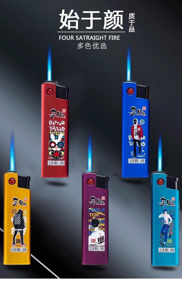 Encendedor inflable de metal a prueba de viento y color degradado, de llama azul a prueba de explosiones y de alto color, para publicidad personalizada al por mayor