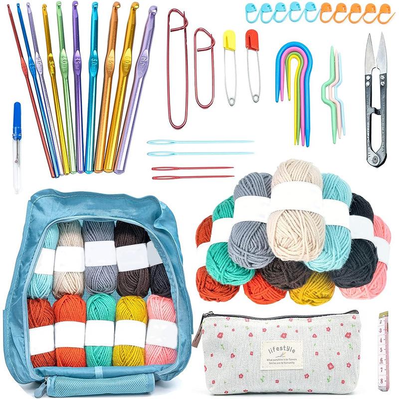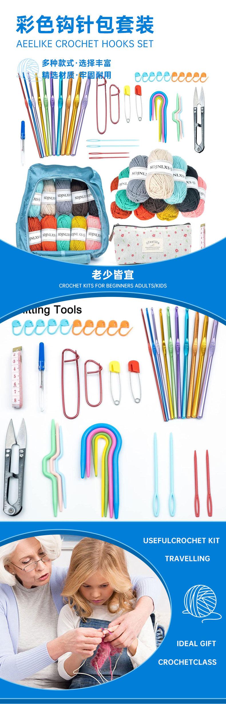 Conjunto completo de 50 piezas de traje de crochet transfronterizo para principiantes, paquete de materiales, herramientas portátiles para tejer lana
