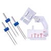 Función: Con una aguja doble, puedes coser dos líneas decorativas idénticas al mismo tiempo. Puedes usar puntada recta o puntada de patrón, o usar dos hilos superiores de diferentes colores para una apariencia más hermosa.