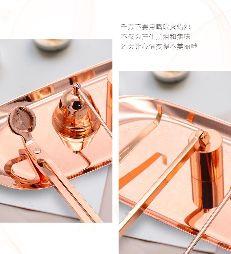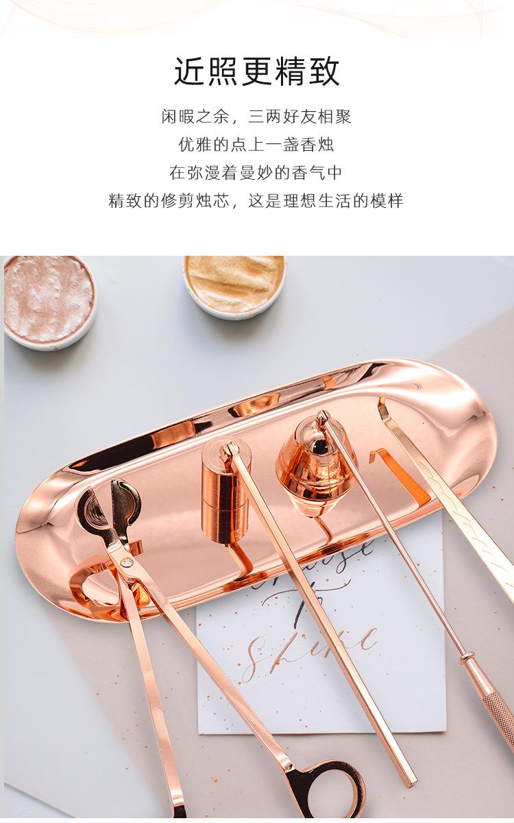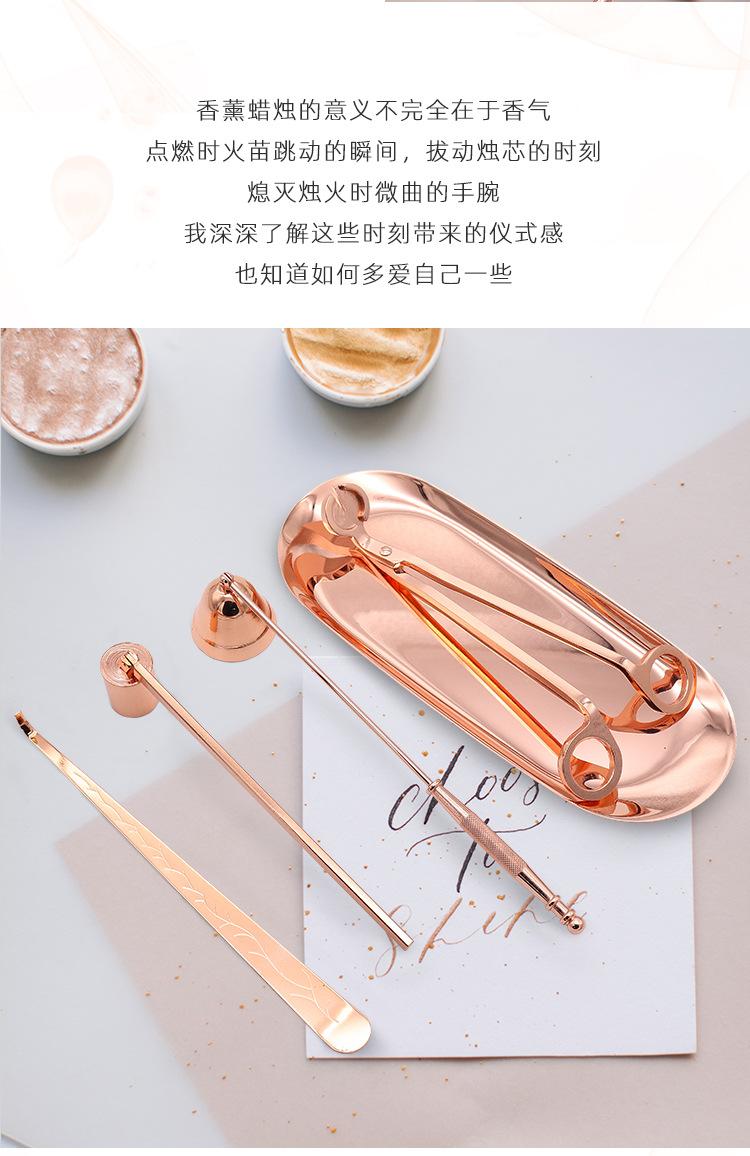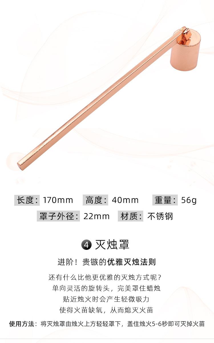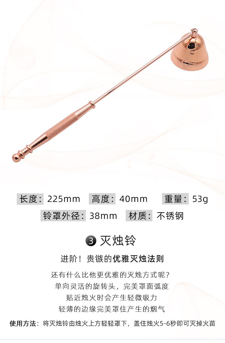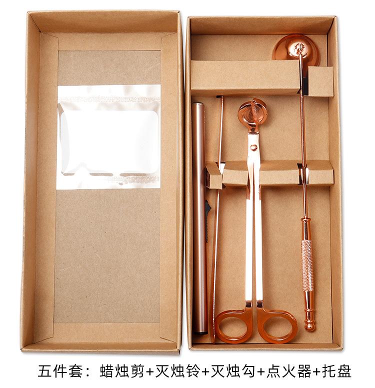 Juego de cinco piezas de apagavelas de acero inoxidable al por mayor de fábrica, apagavelas para velas de aromaterapia de interior, cortavelas, herramienta para velas en oro rosa
