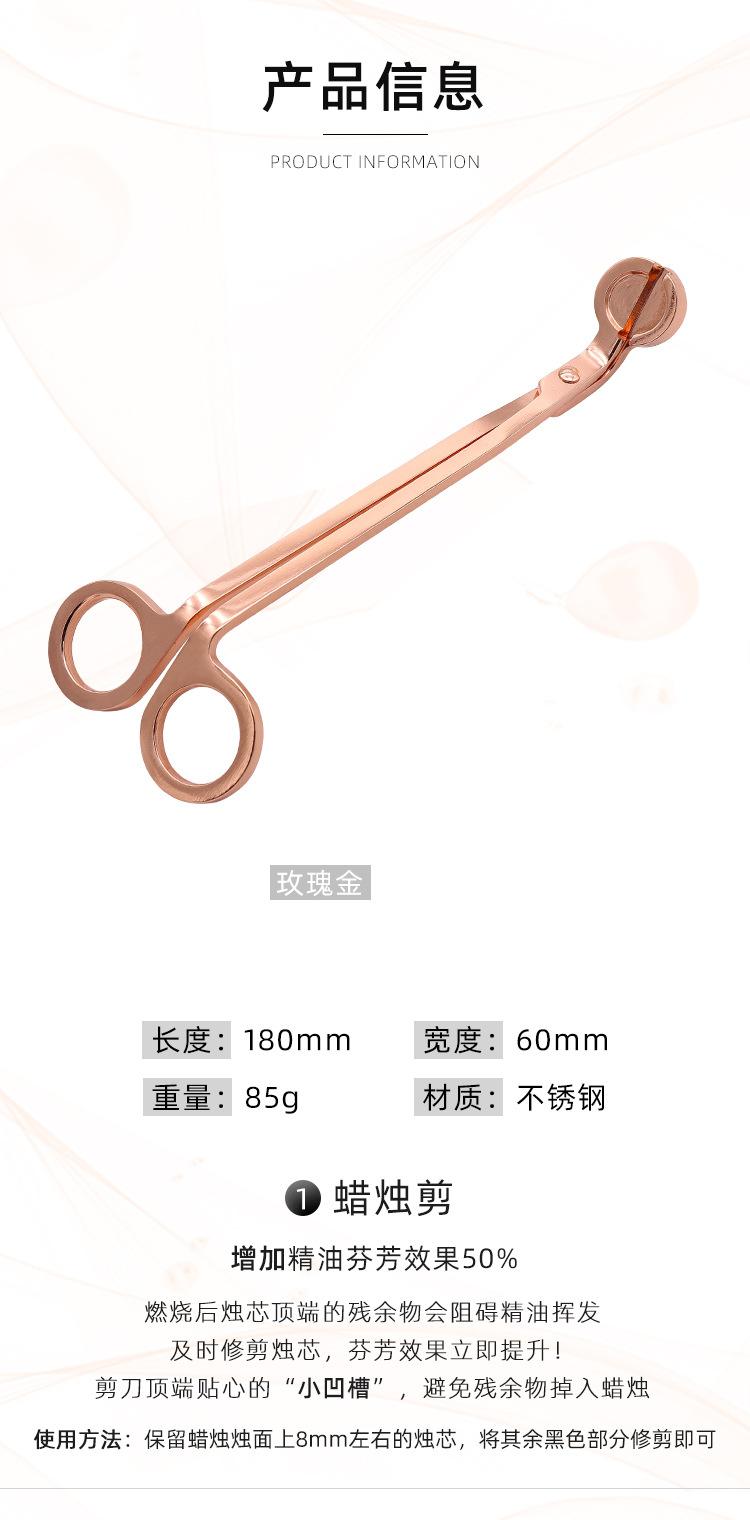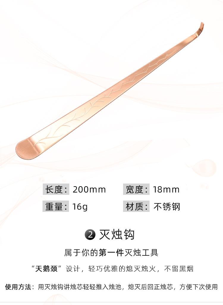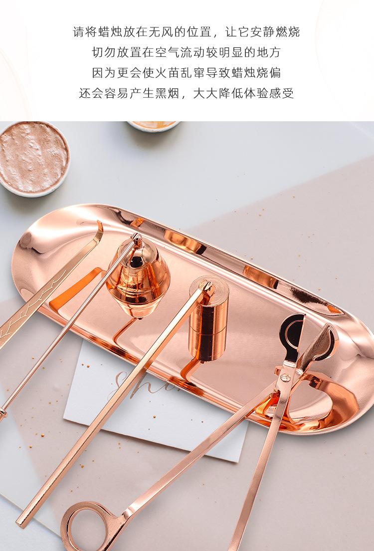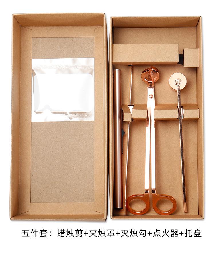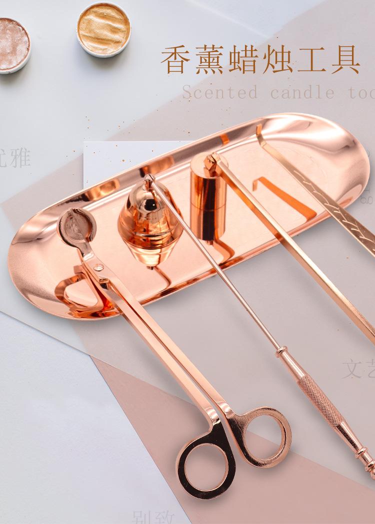 Juego de cinco piezas de apagavelas de acero inoxidable al por mayor de fábrica, apagavelas para velas de aromaterapia de interior, cortavelas, herramienta para velas en oro rosa