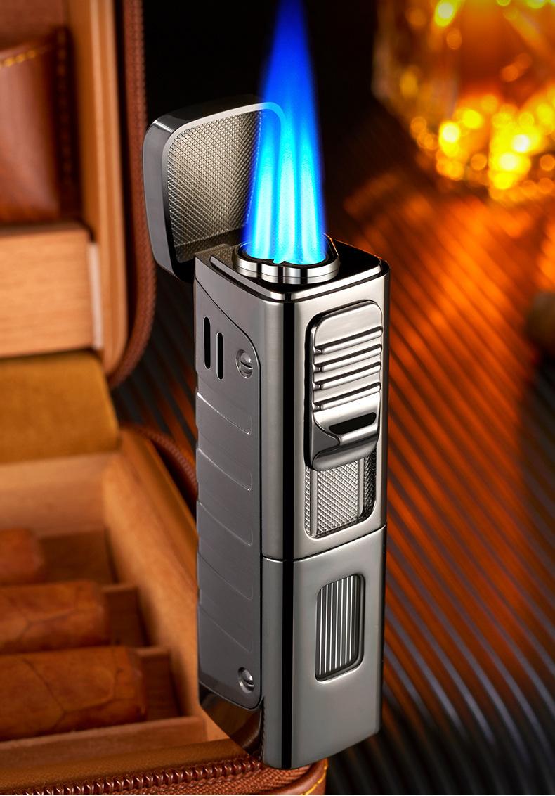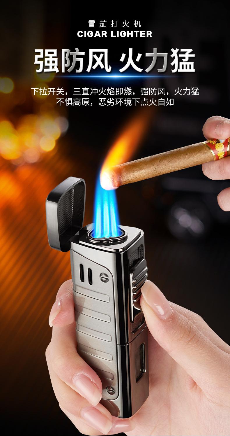 TH608 nueva pistola pulverizadora directa de tres fuegos, de metal, visual, de aire, para almacén, a prueba de viento, inflable, taladro para cigarros, encendedor, venta al por mayor