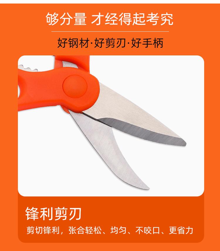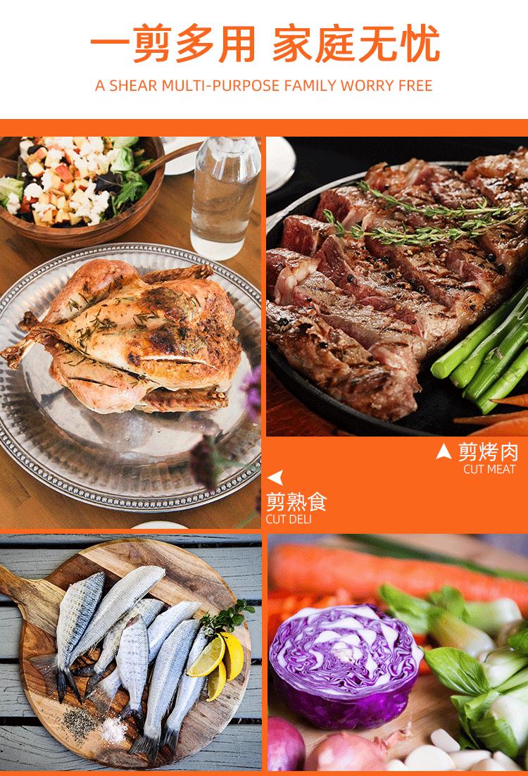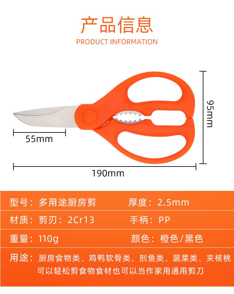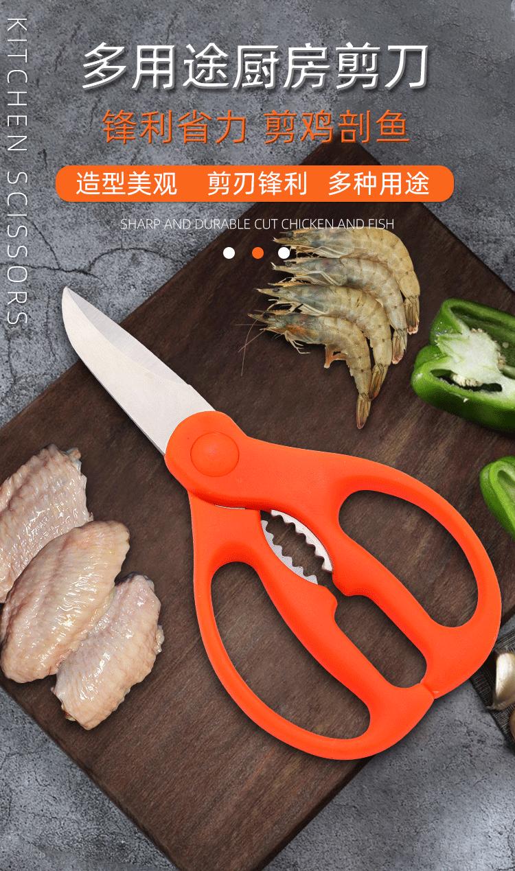 Tijeras de cocina multiusos con clip de nogal, venta al por mayor de fábrica, tijeras para hueso de pollo, tijeras de cocina de acero inoxidable para uso doméstico.