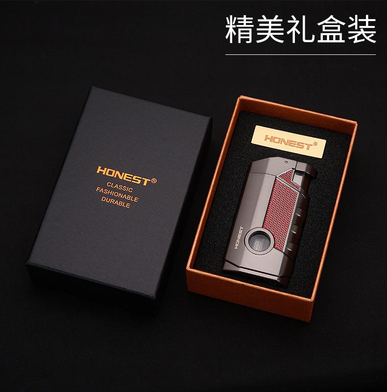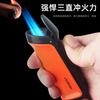 Encendedor inflable a prueba de viento Baicheng de tres fuegos con punta de llama azul recta, regalo de negocios personalizado de alta gama.