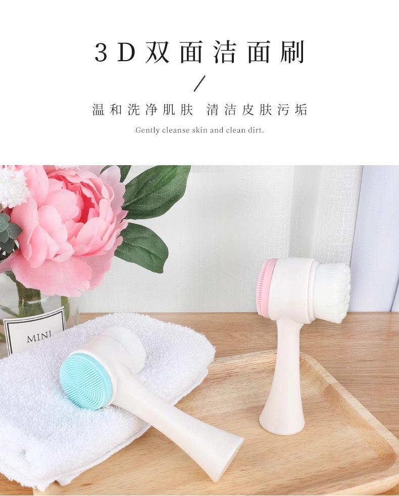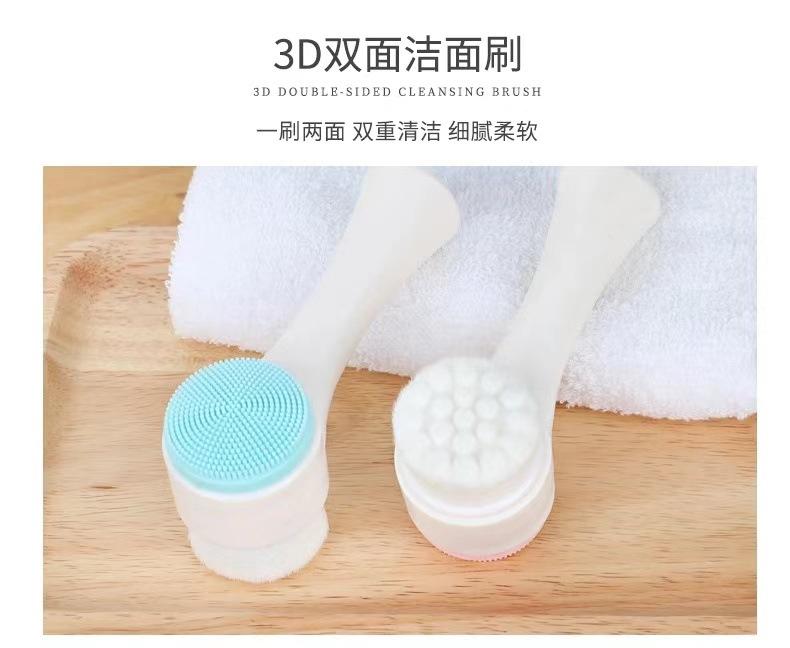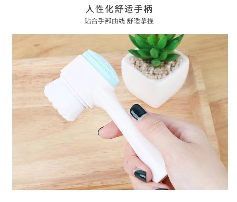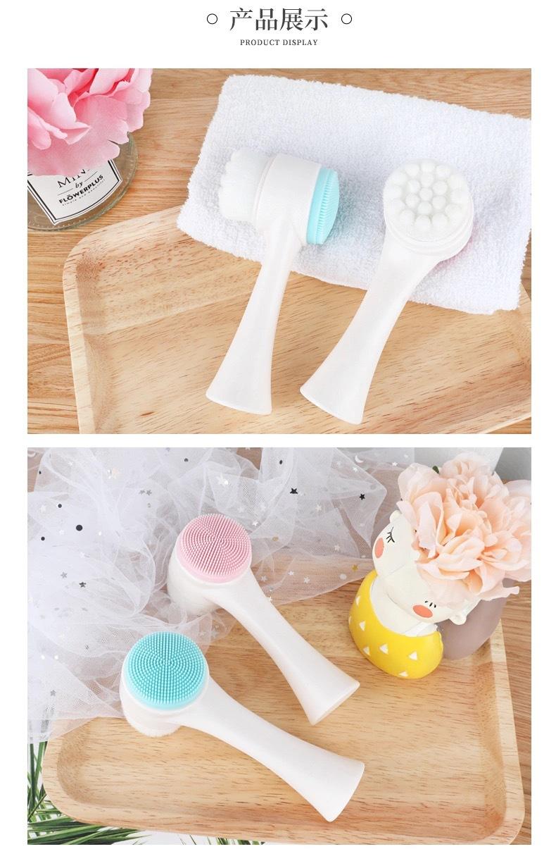 Artefacto de lavado facial, cepillo facial, cepillo de limpieza facial, cepillo de masaje manual de pelo suave, instrumento de limpieza facial de silicona de doble cabezal