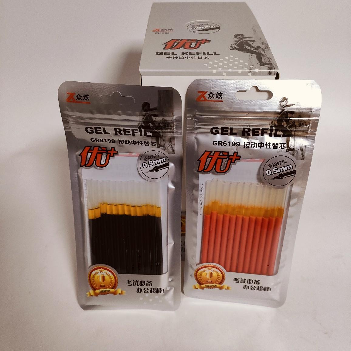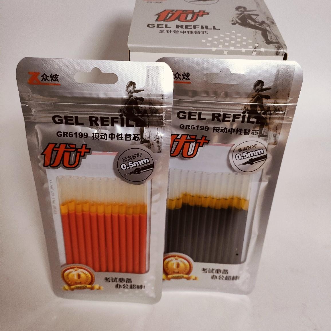 Recambio push neutro de 12 piezas Negro Rojo 0.5 núcleo de repuesto de tubo de aguja completa recambio de tinta de carbono para estudiantes