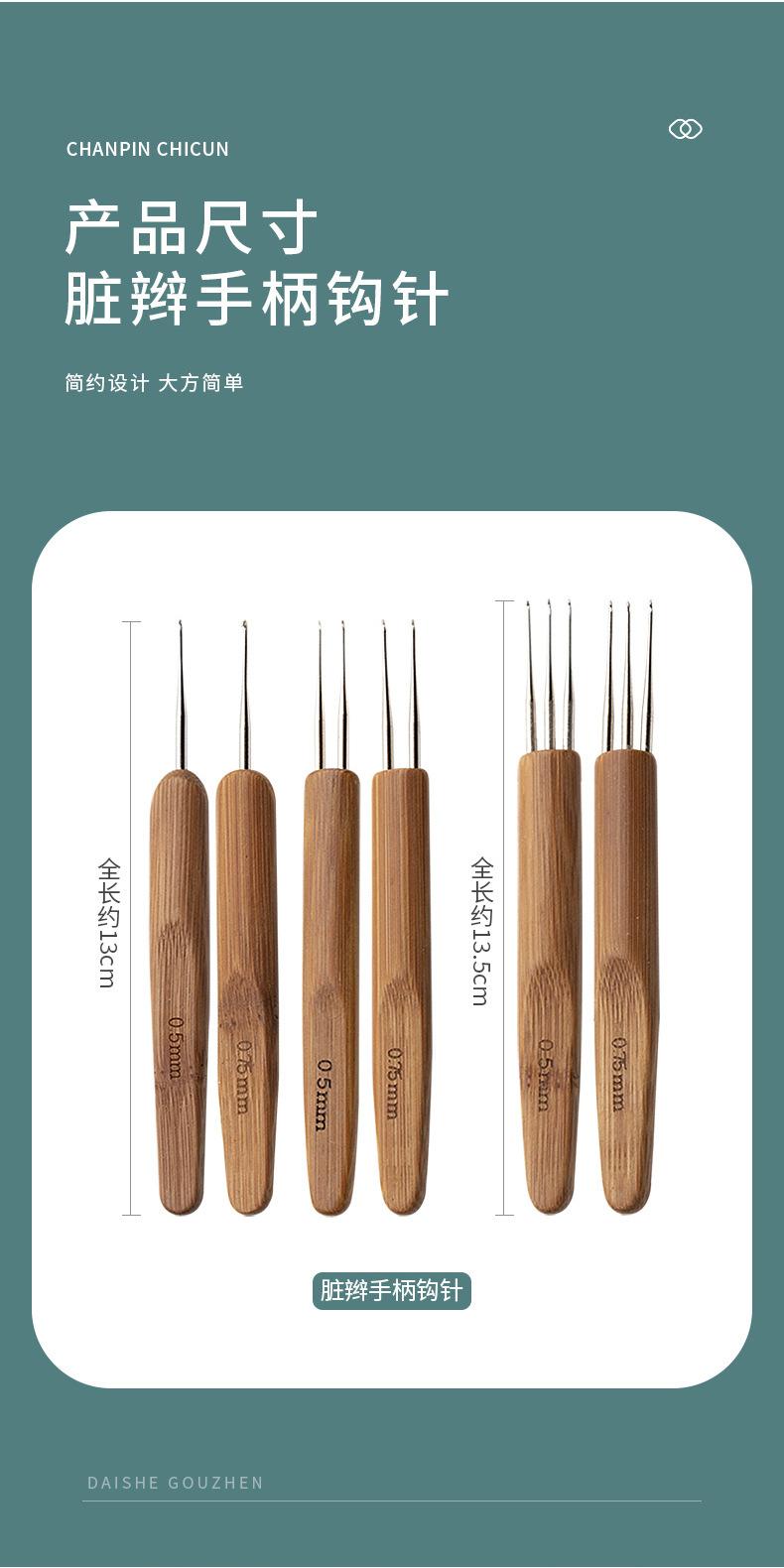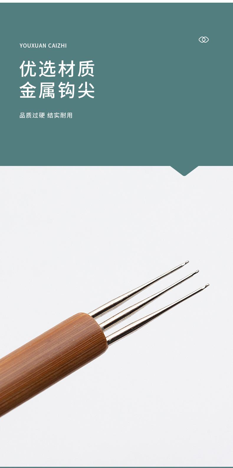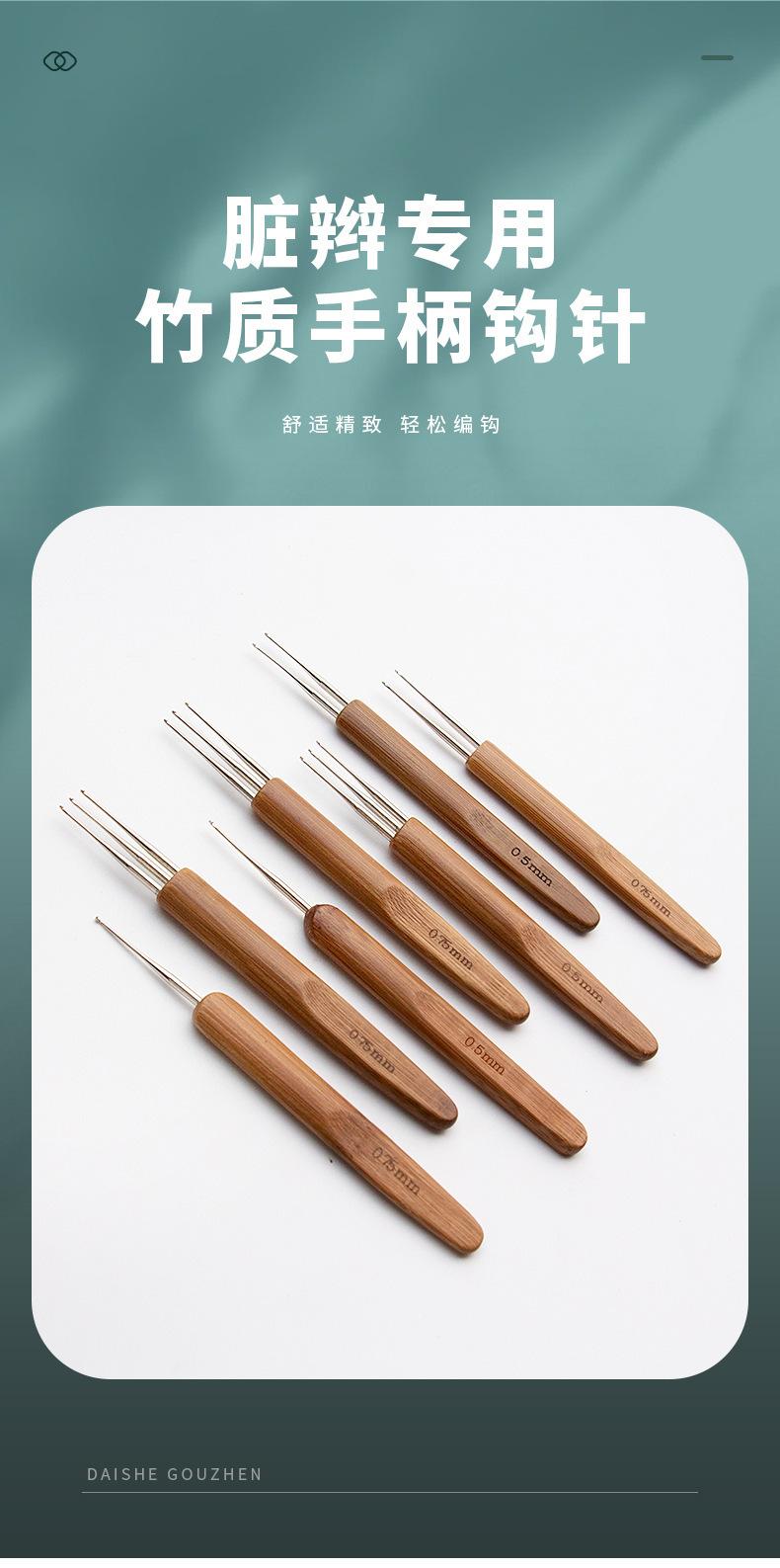 Venta al por mayor de fábrica mango de bambú gancho simple y doble tres ganchos trenza sucia ganchillo trenza sucia herramienta de tejido peluca extensor de cabello ganchillo de bambú