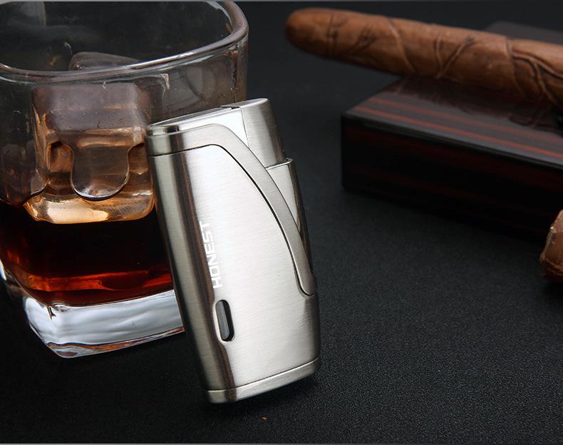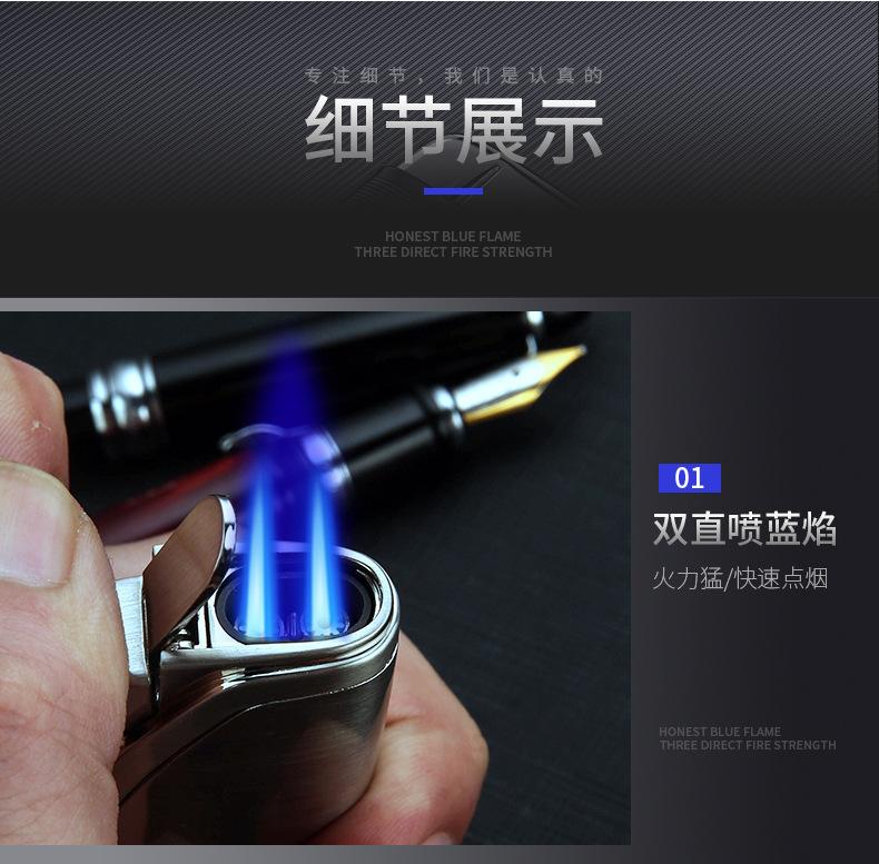 Encendedor portátil creativo Baicheng, doble recto, a prueba de viento, de metal, inflable, boutique, venta directa de fábrica