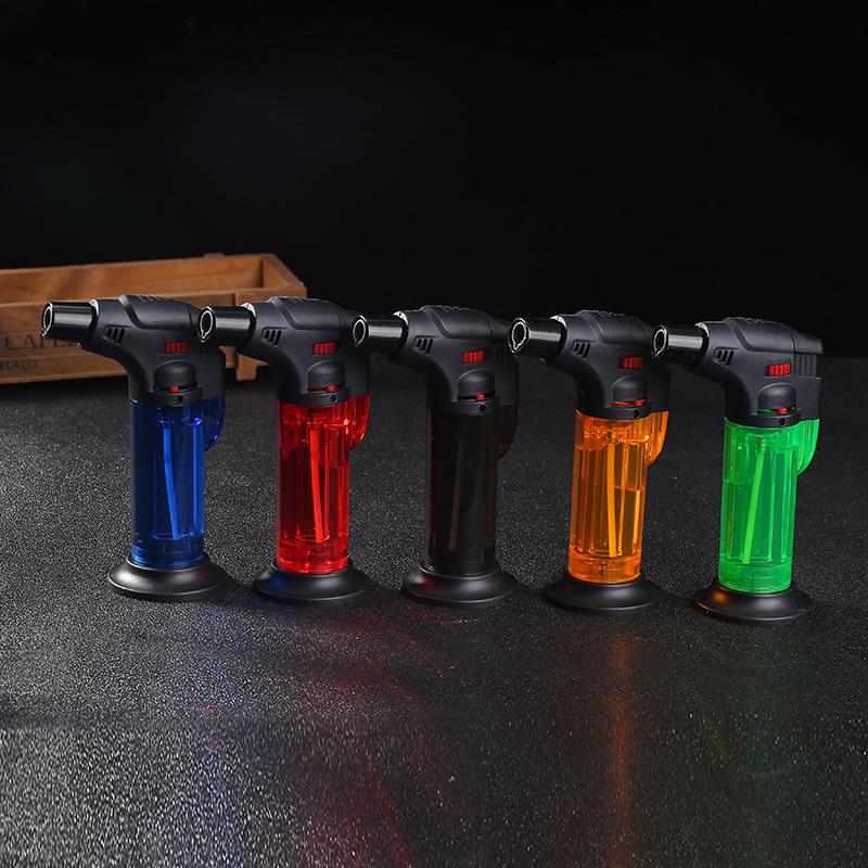 Encendedor Hengzheng de cinco colores transparente con base, pistola rociadora directa fuerte, punto de ignición para barbacoa al aire libre, pistola rociadora de moxibustión