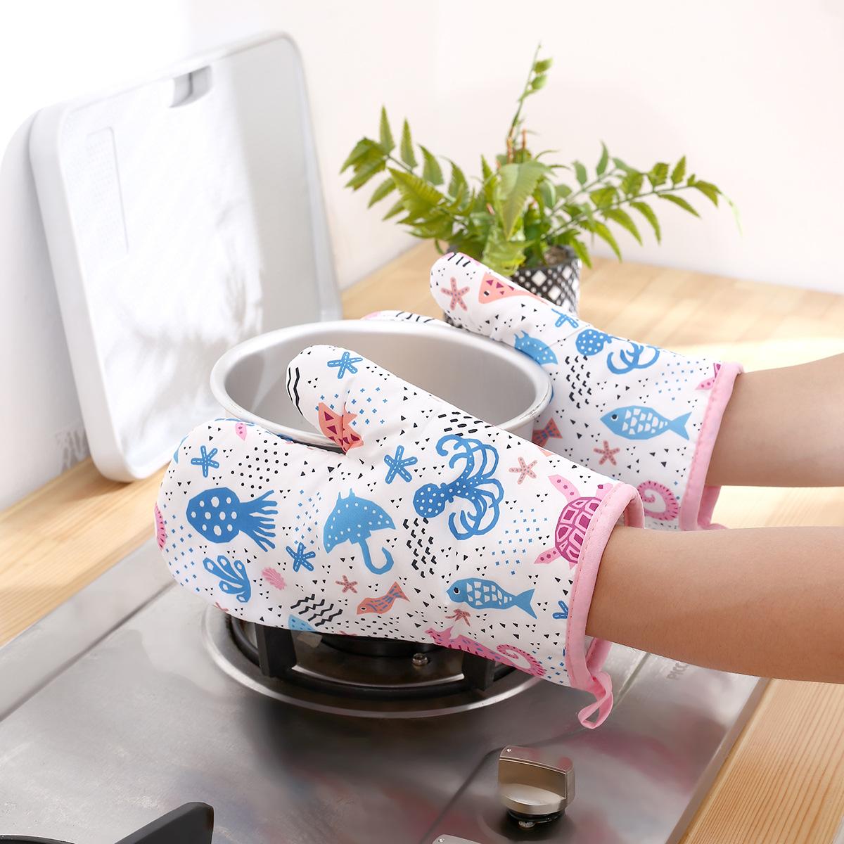 Guantes de Aislamiento Térmico para Cocina Doméstica Transfronteriza Guantes para Horno para Hornear Resistentes al Calor Anti-escaldaduras Guantes para Microondas Guantes de Poliéster