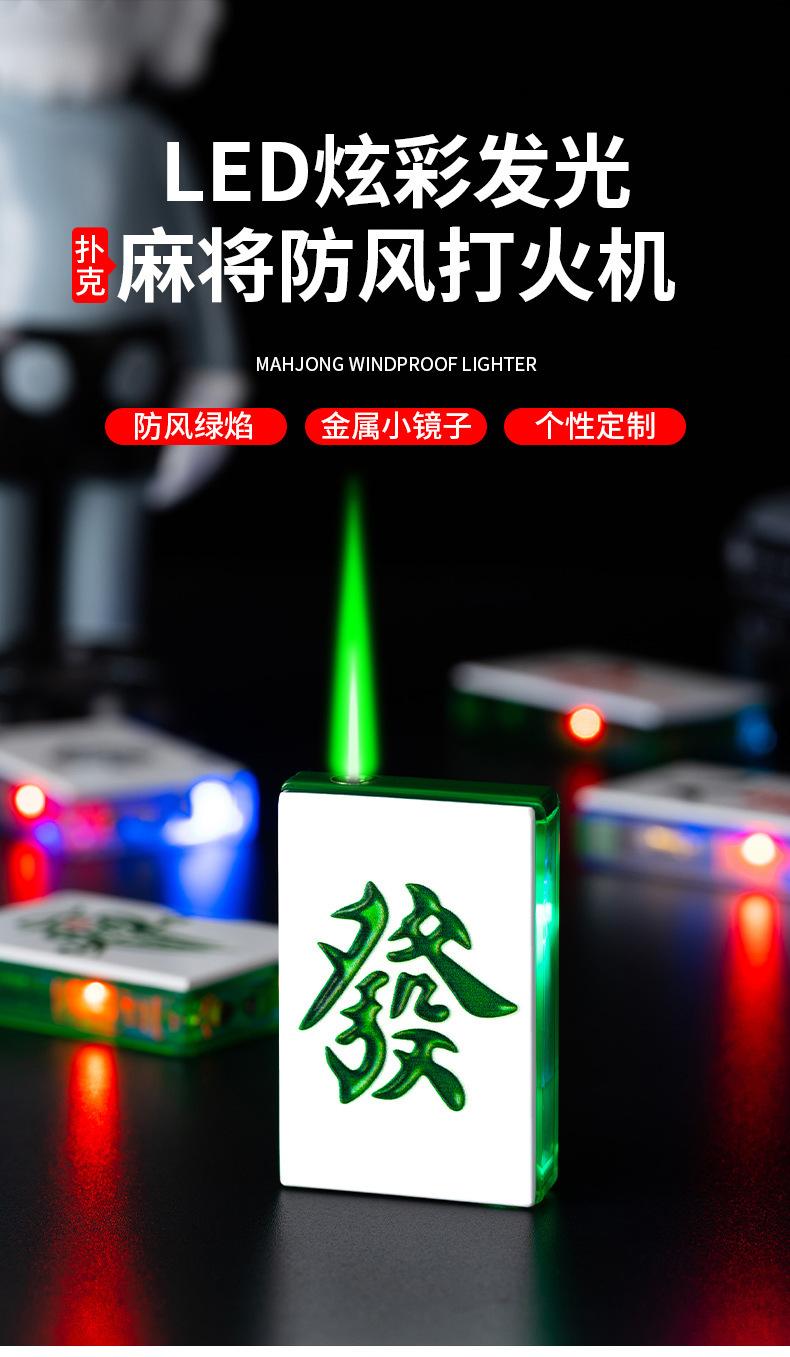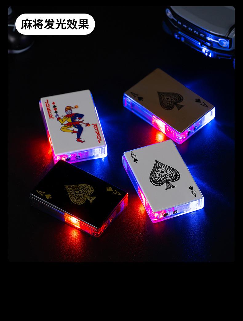 Encendedor inflable transparente TikTok con forma de póker, Mahjong, a prueba de viento, luminoso y con espejo, color rojo