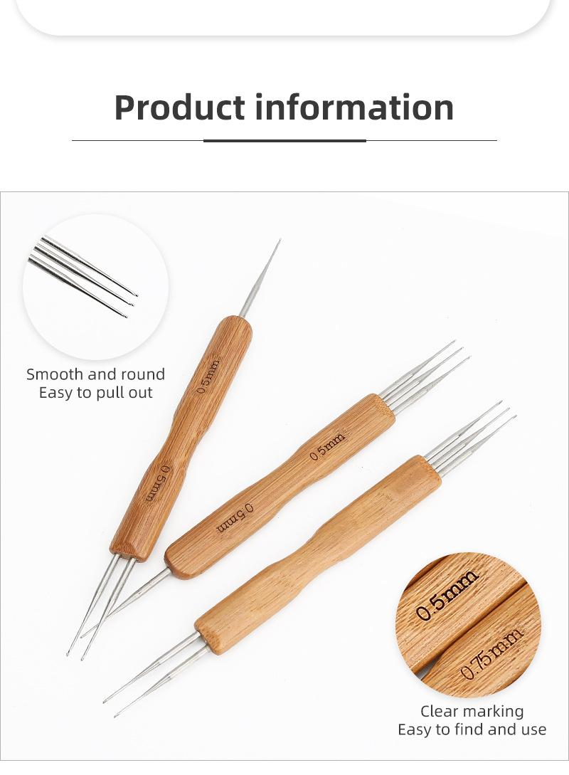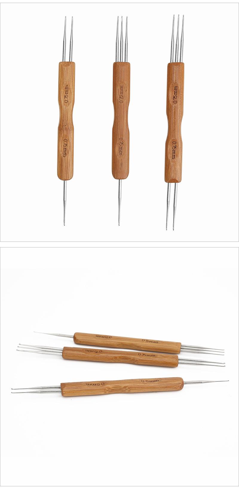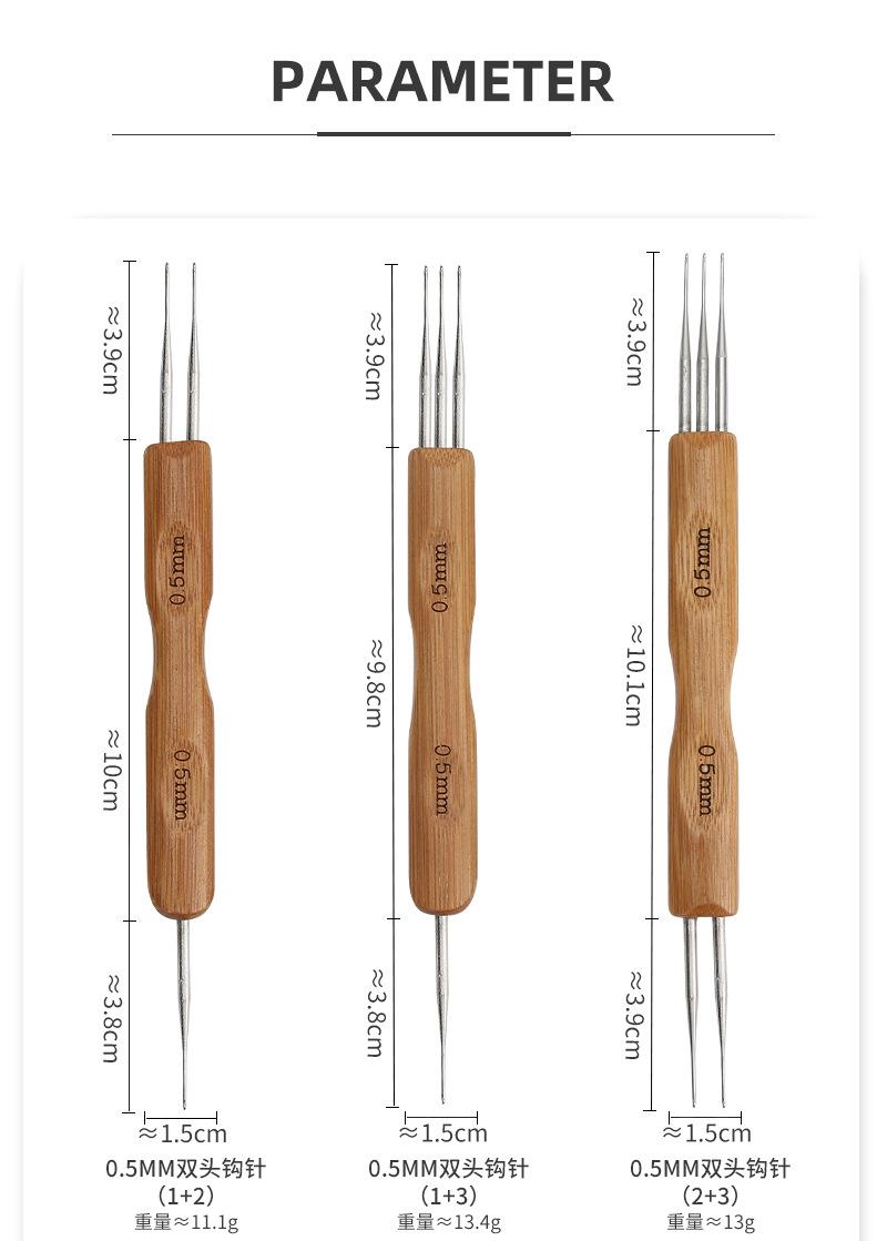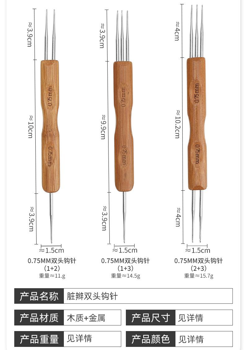 Peluca de ganchillo de gran venta transfronteriza con mango de madera, herramienta para extender el cabello de ganchillo, tres cabezas, hecha a mano, para tejer a ganchillo, trenza sucia de ganchillo.