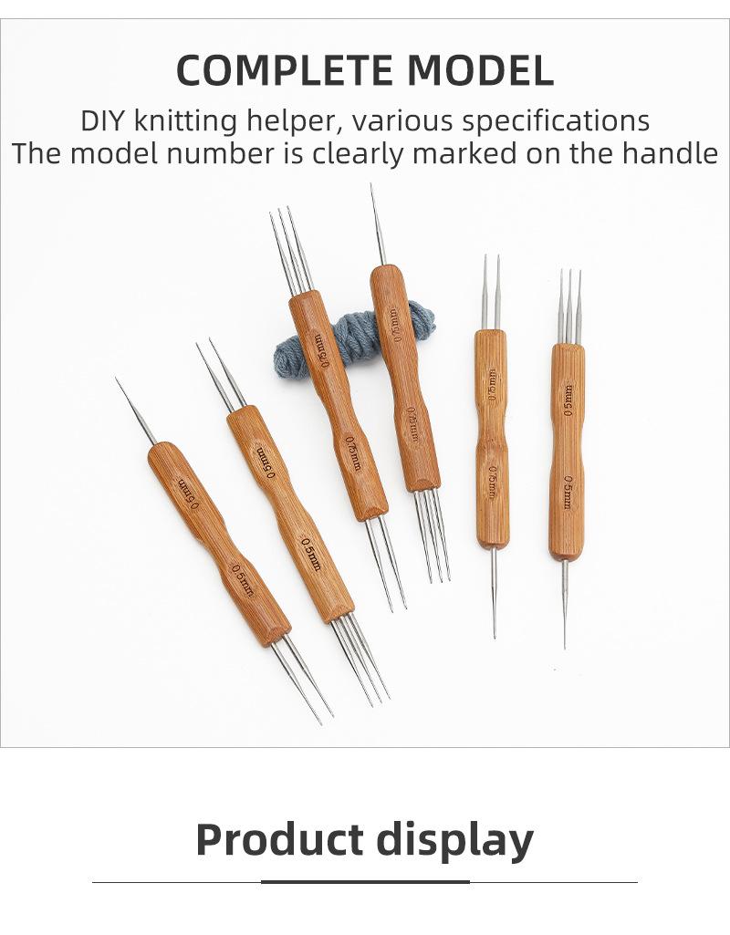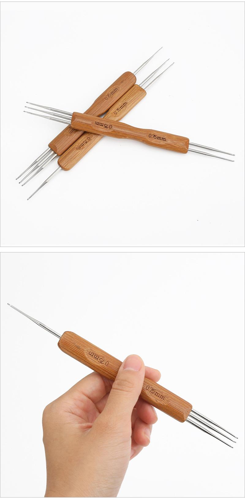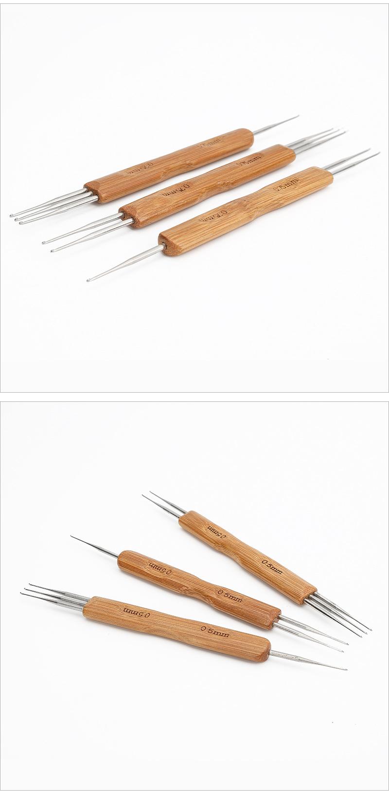 Peluca de ganchillo de gran venta transfronteriza con mango de madera, herramienta para extender el cabello de ganchillo, tres cabezas, hecha a mano, para tejer a ganchillo, trenza sucia de ganchillo.